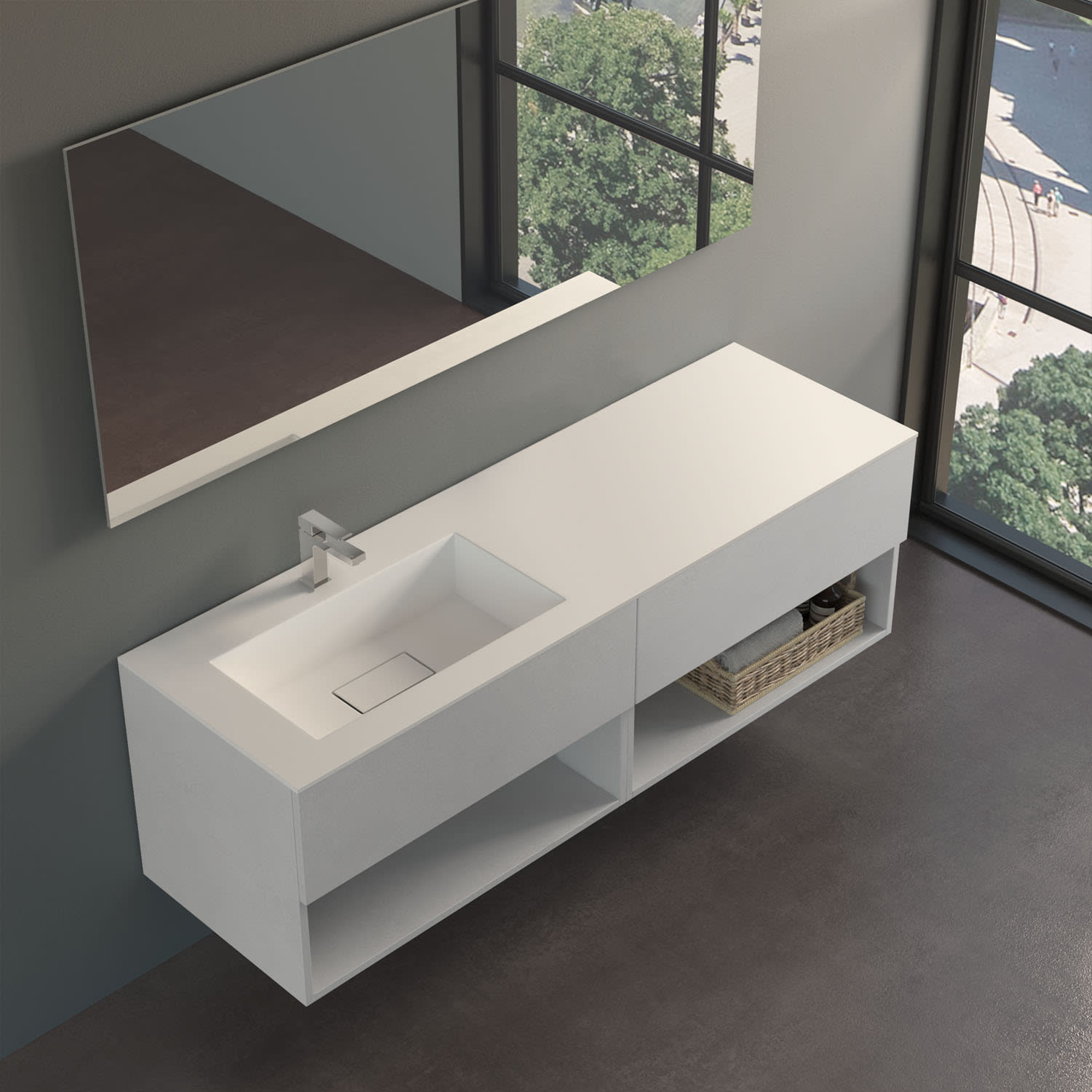 progettobagno Evo 54 Lago Uno Waschtisch mit Unterschrank 160 cm, Ausführung links