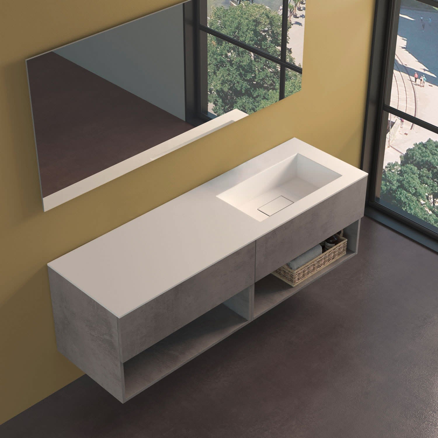 progettobagno Evo 54 Lago Uno Waschtisch mit Unterschrank 160 cm, Ausführung rechts ohne Hahnloch