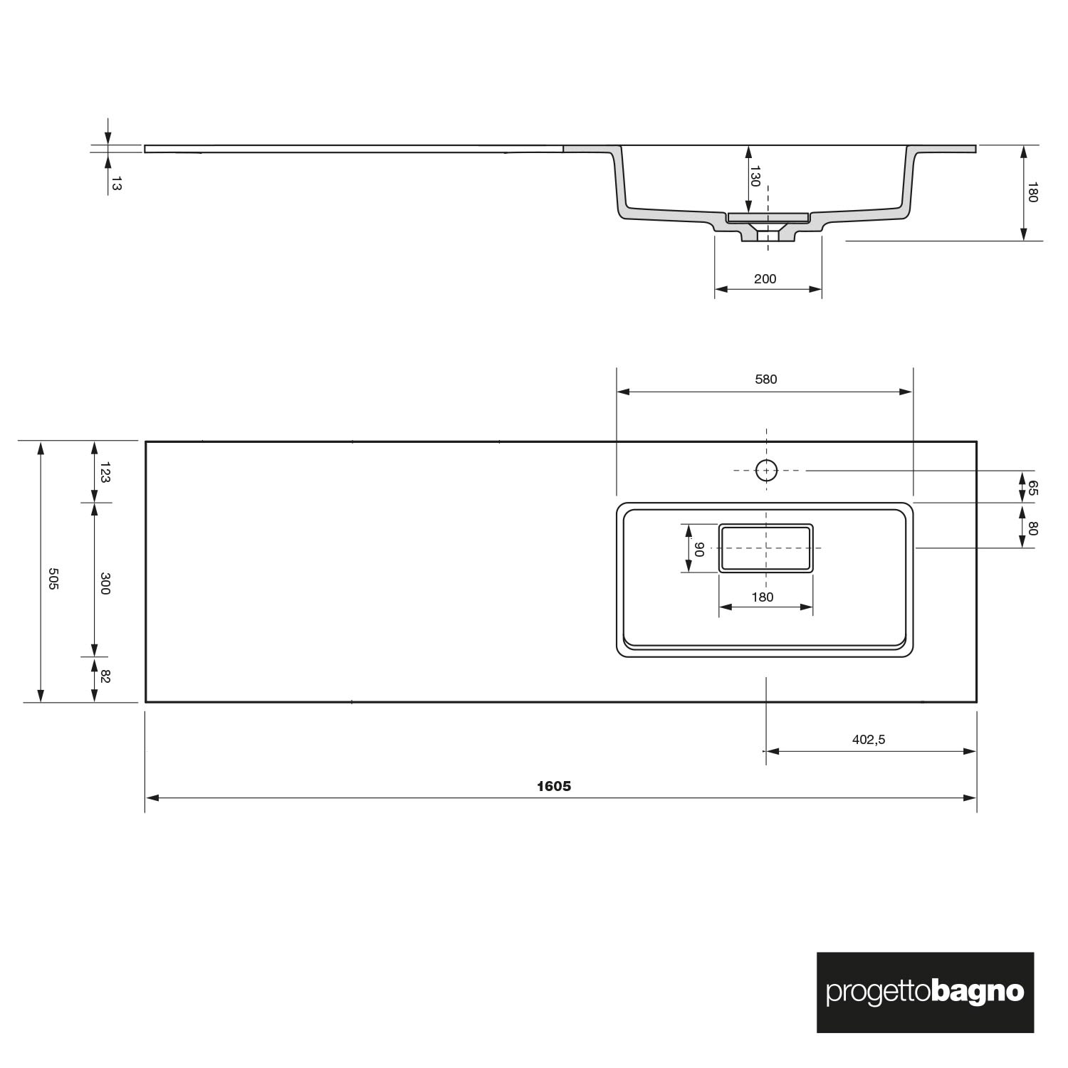 progettobagno Evo 54 Lago Waschtisch mit Unterschrank 160 cm, Ausführung rechts