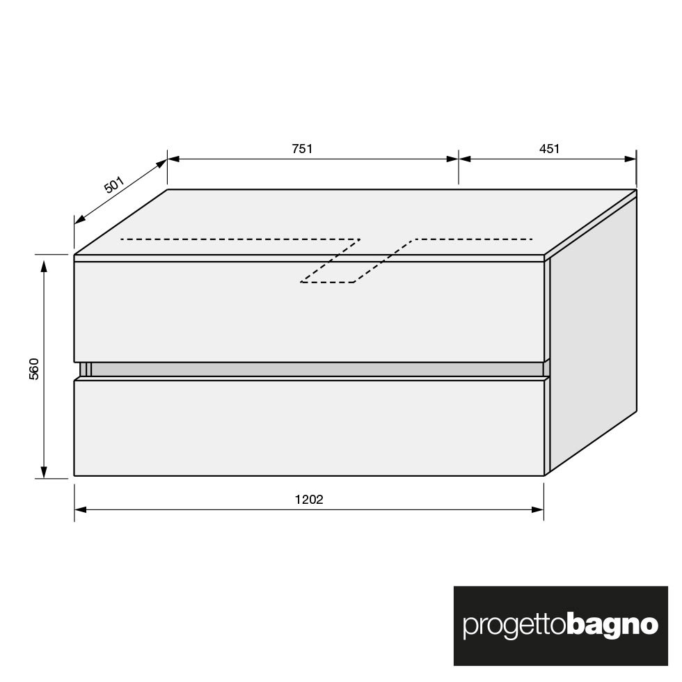 progettobagno Evo 54 Modular Waschtischkonsole 120 cm , Ausführung rechts