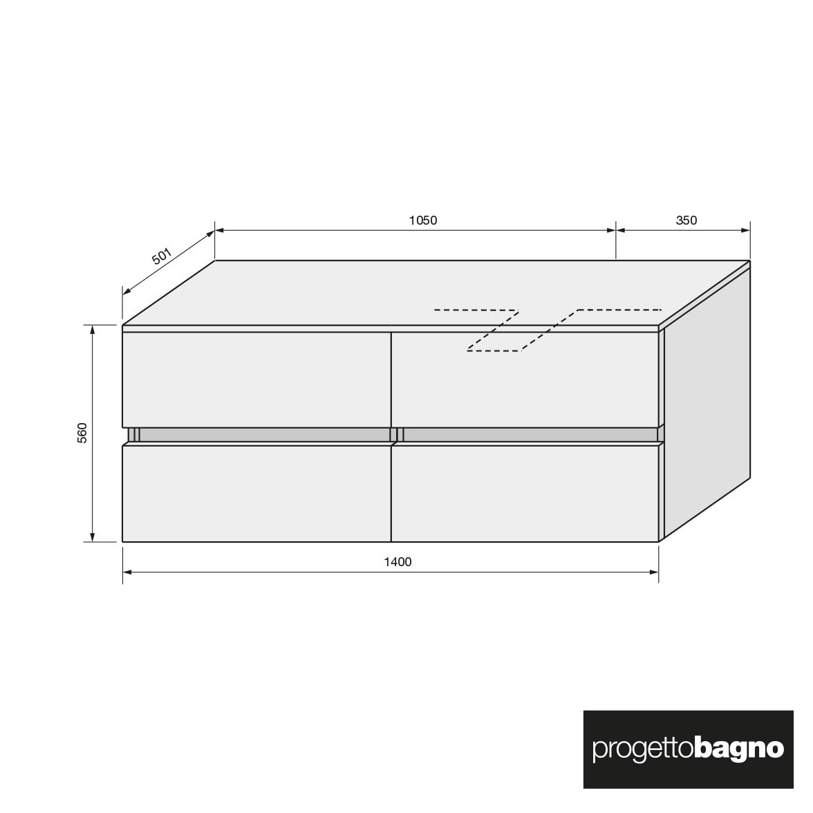 progettobagno Evo 54 Modular Waschtischkonsole 140 cm, Ausführung rechts