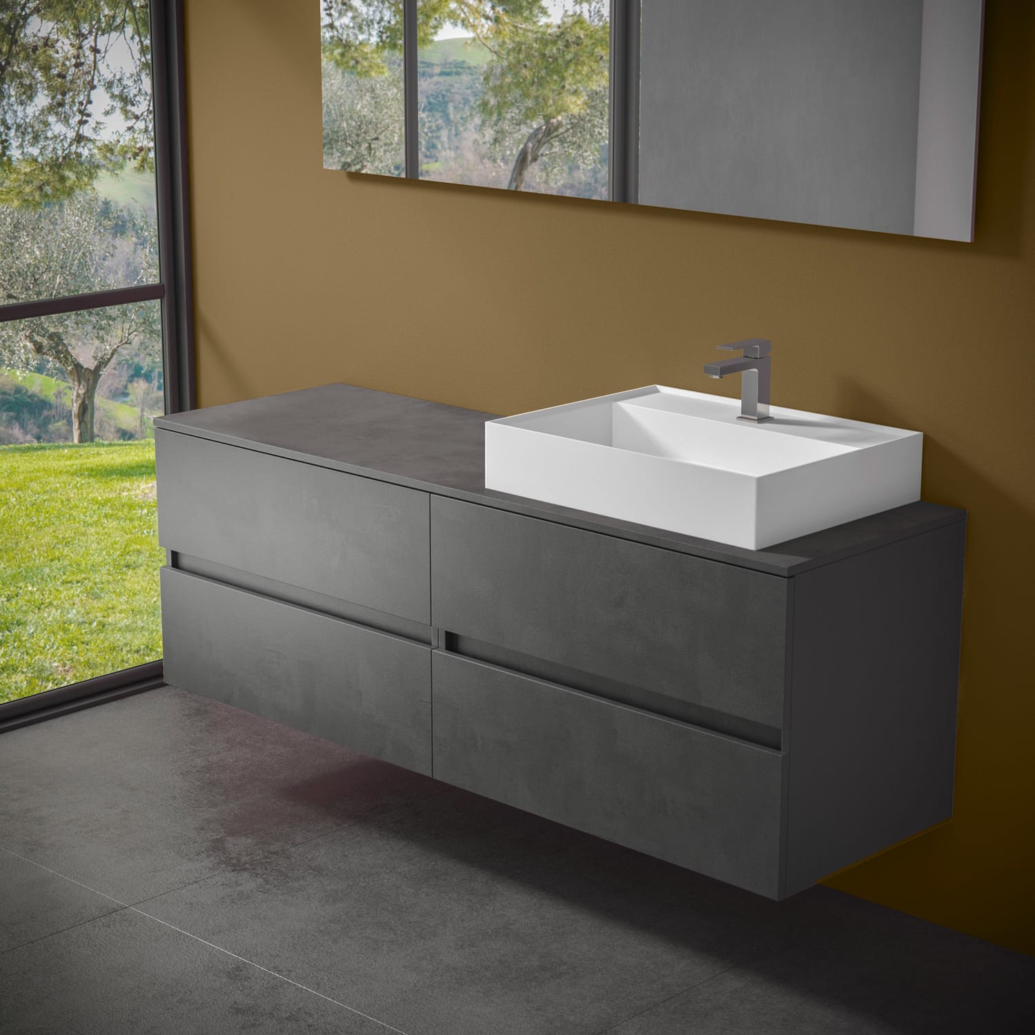 - Front und Korpus aus laminierter und wasserabweisender Hydro W 100-Holzfaser