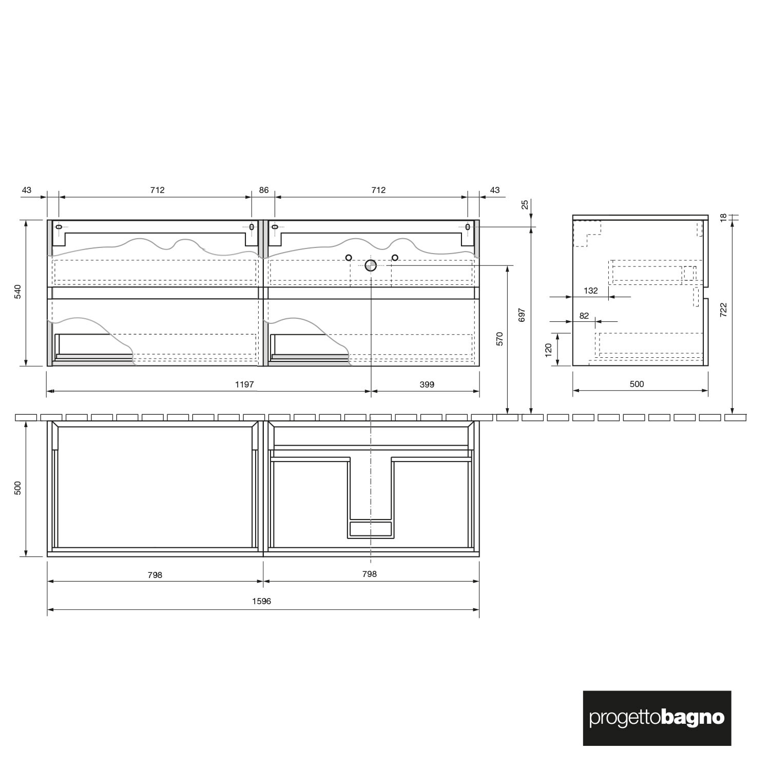 progettobagno Evo 54 Modular Waschtischkonsole 160 cm, Ausführung rechts