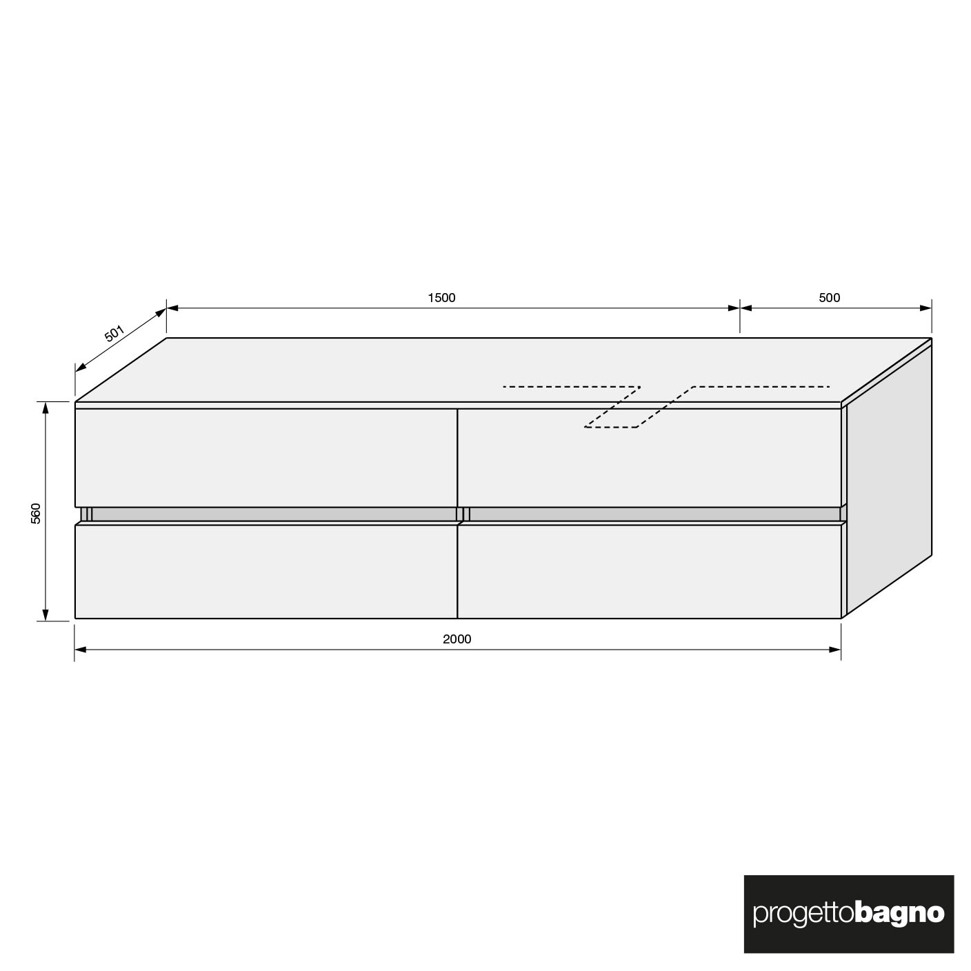progettobagno Evo 54 Modular Waschtischkonsole 200 cm, Ausführung rechts