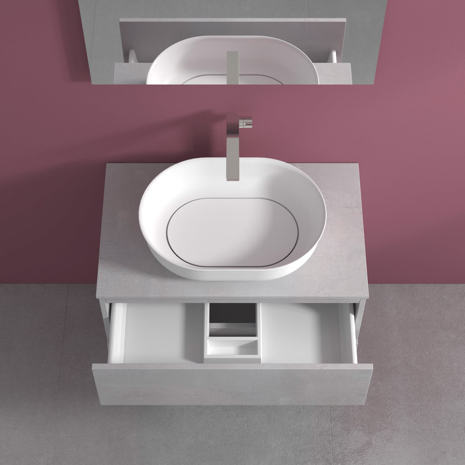 - Waschtischplatte ohne Hahnlochbohrung, ohne Ausschnitt!