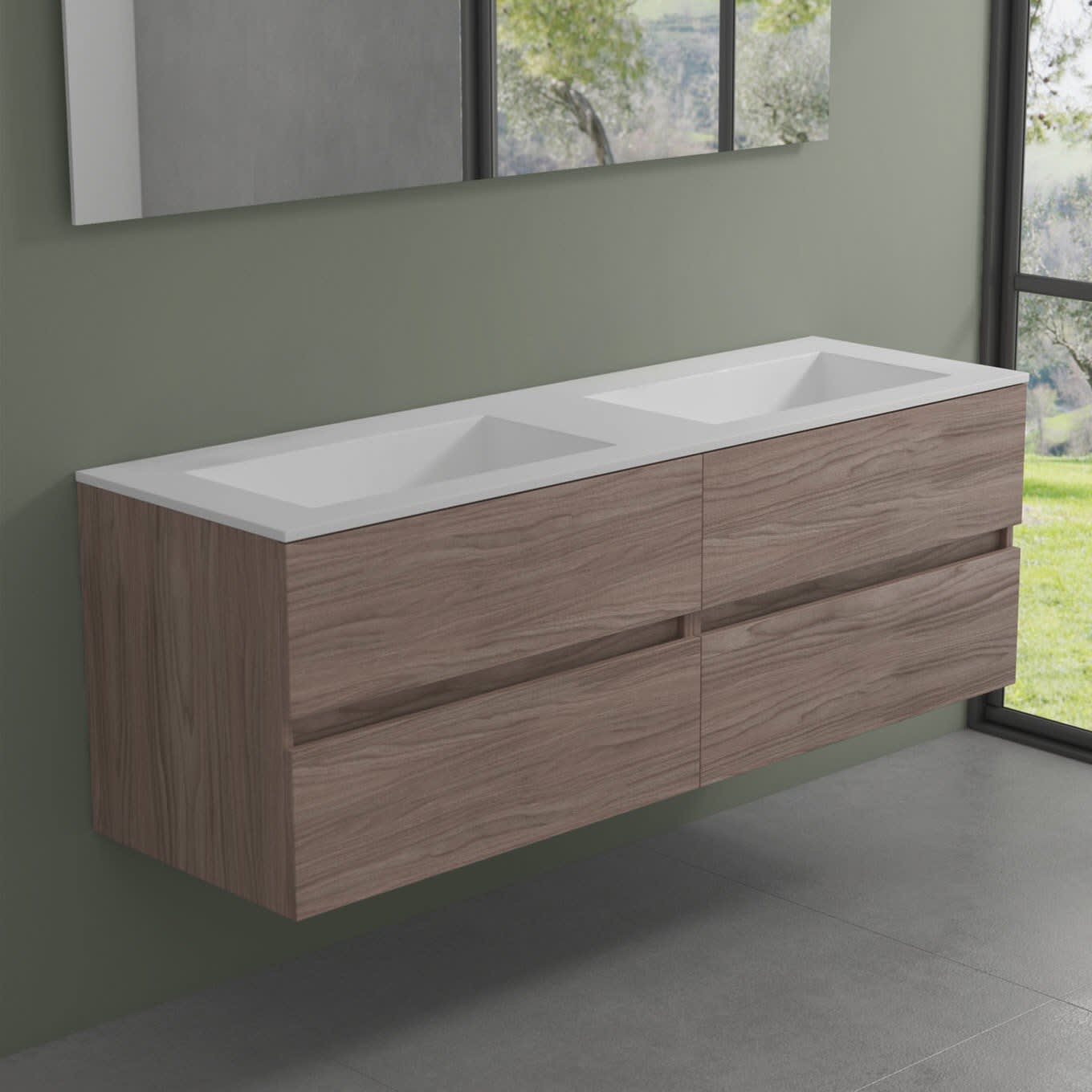 progettobagno Evo 54 Walnuss Vision Waschtisch Lago mit Unterschrank 160 cm ohne Hahnloch