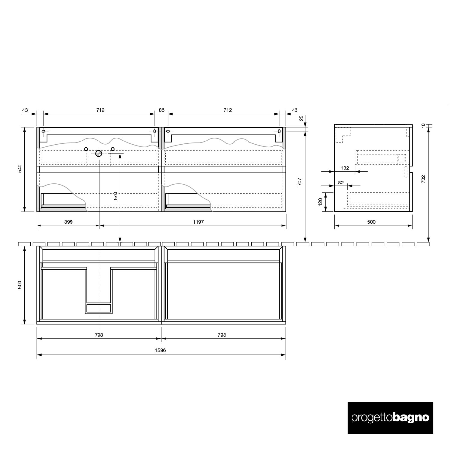 progettobagno Evo 54 Walnuss Vision Waschtischkonsole 160 cm, Ausführung links