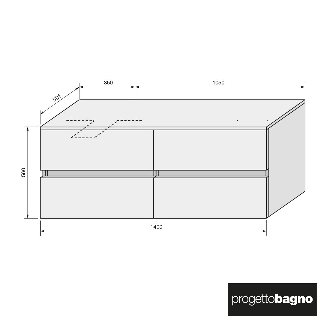 - Waschtischunterschrank mit 4 Auszüge mit Siphonausschnitt links