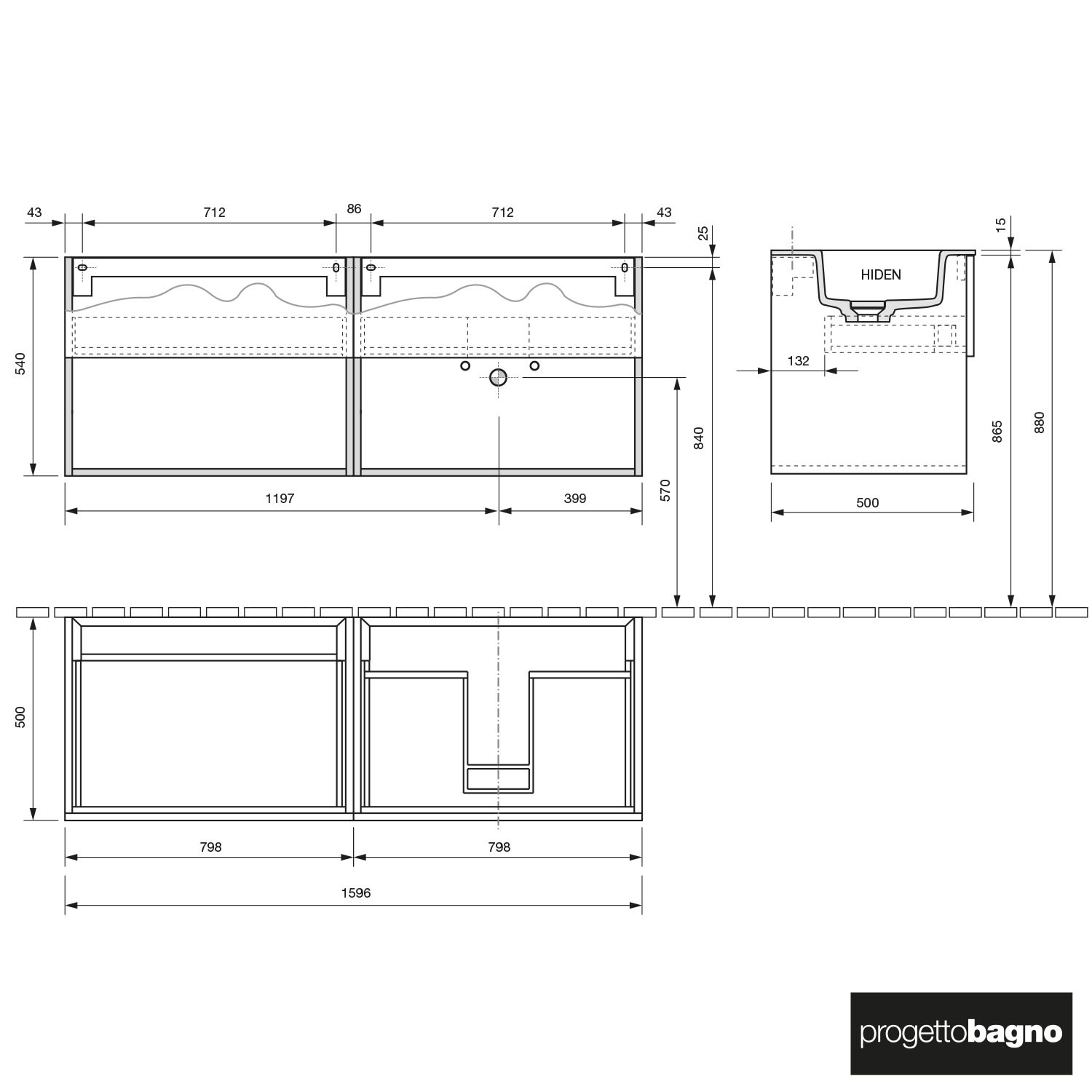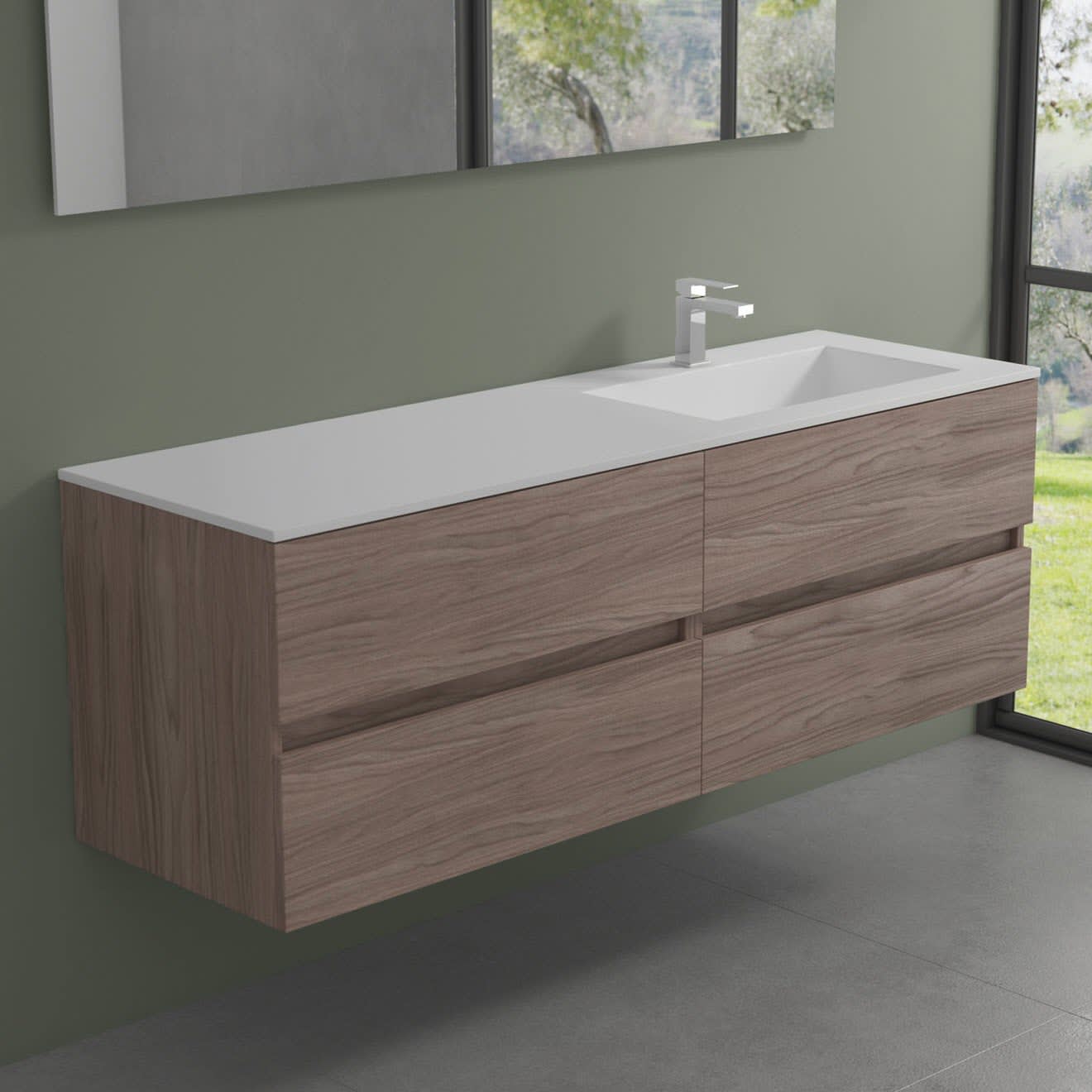 progettobagno Evo 54 Walnuss Vision Waschtisch Lago mit Unterschrank 160 cm , Ausführung rechts