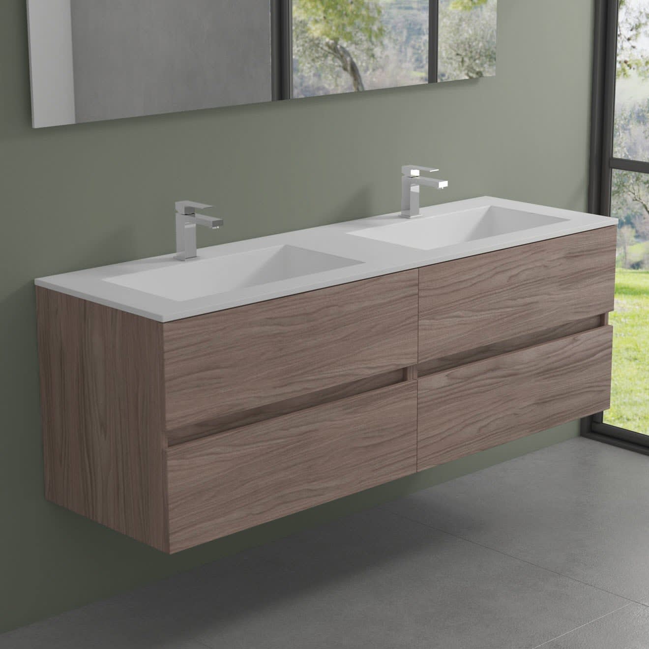 progettobagno Evo 54 Walnuss Vision Waschtisch Lago mit Unterschrank 160 cm