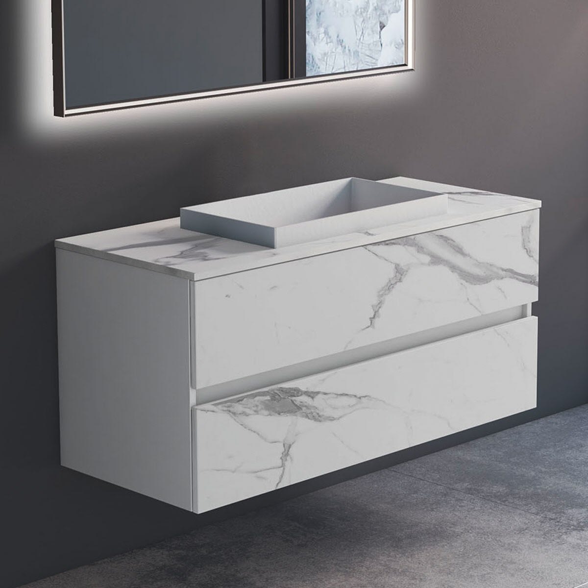 progettobagno Evo Marmi Unterschrank 120 cm mit Waschtischplatte, ohne Hahnlochbohrung und ELY 60 Einbauwaschtisch