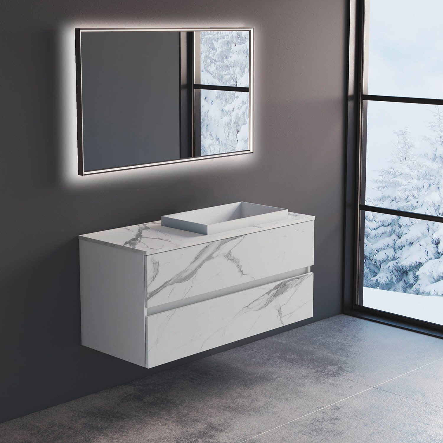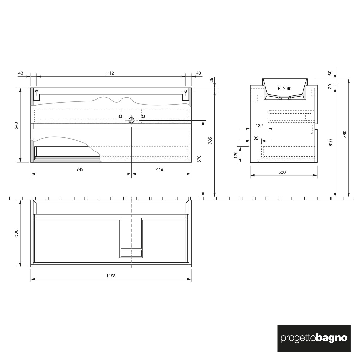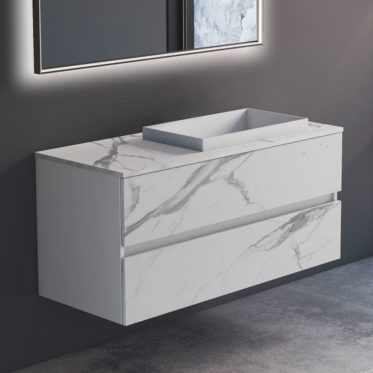 progettobagno Evo Marmi Unterschrank 120 cm mit Waschtischplatte, ohne Hahnlochbohrung und ELY 60 Einbauwaschtisch , Ausführung rechts