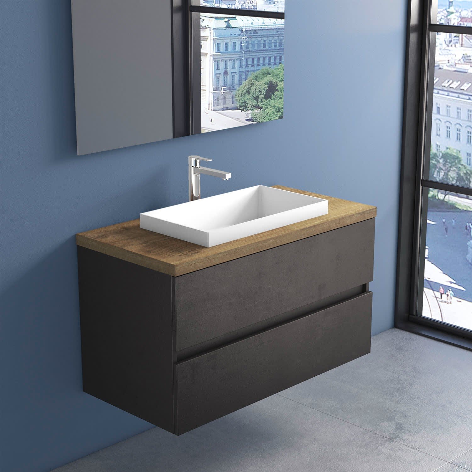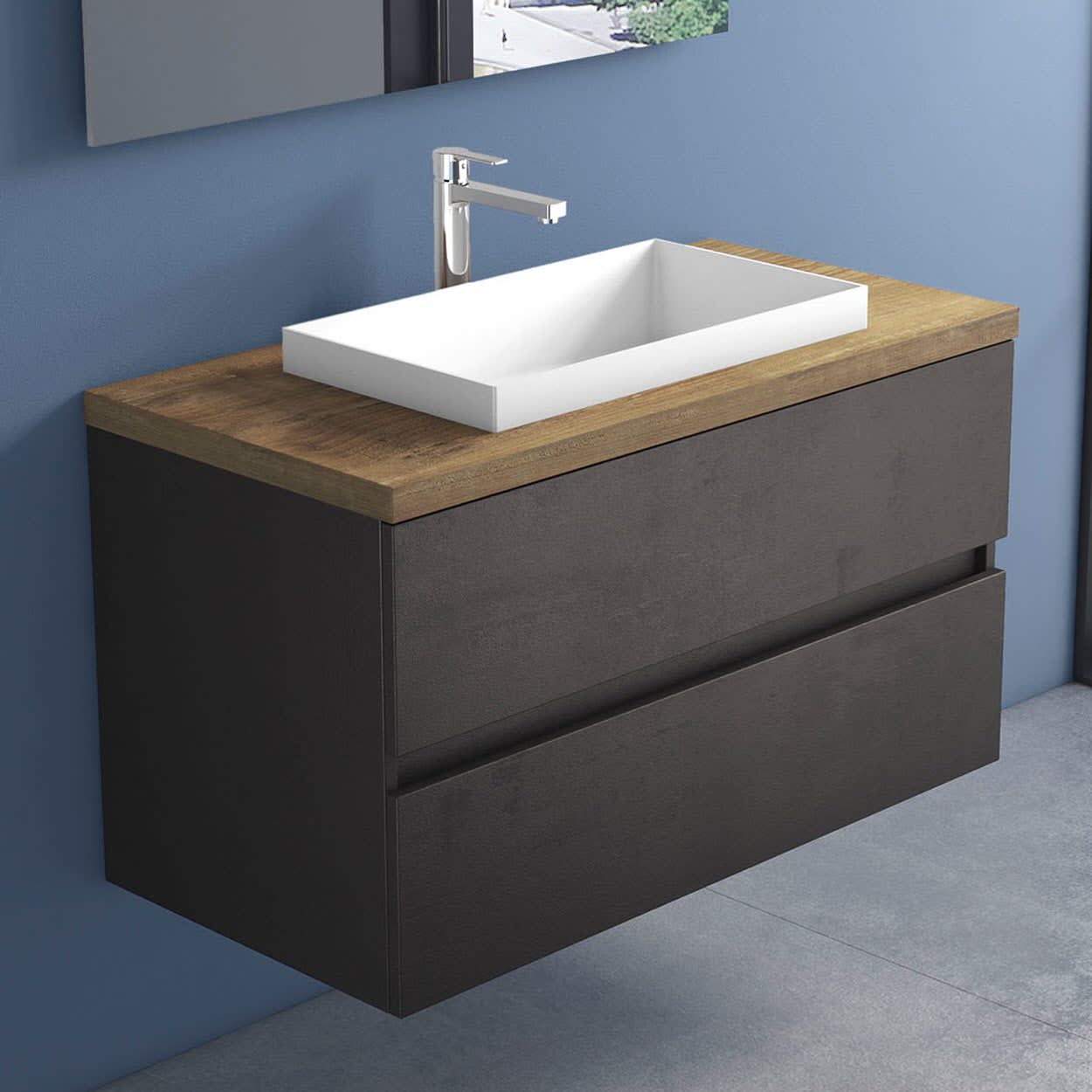progettobagno Evo Terra Unterschrank 100 cm mit Platte in Holzdekor, Hahnlochbohrung und ELY 60 Einbauwaschtisch