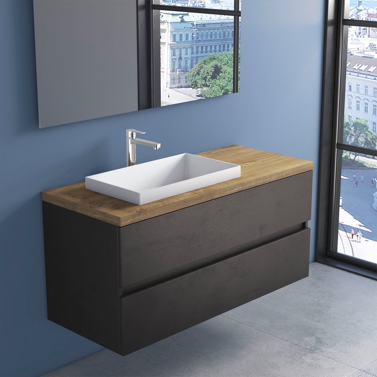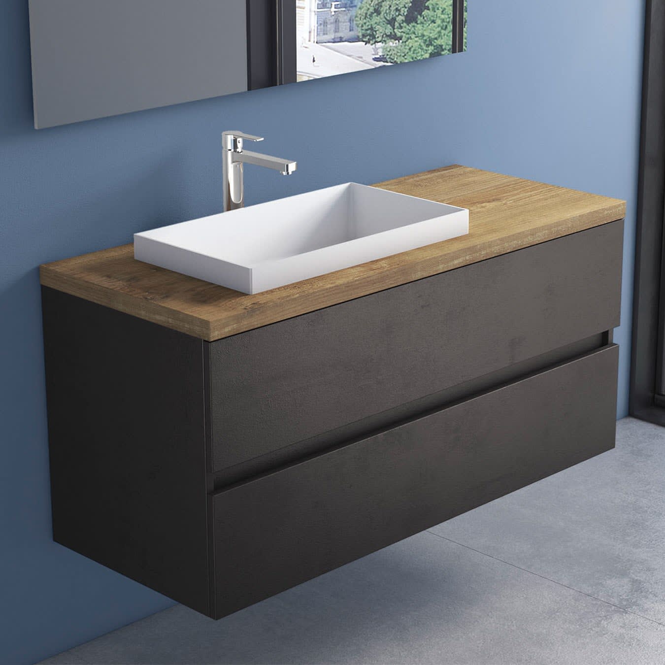 progettobagno Evo Terra Unterschrank 120 cm mit Platte in Holzdekor, Hahnlochbohrung und ELY 60 Einbauwaschtisch , Ausführung links