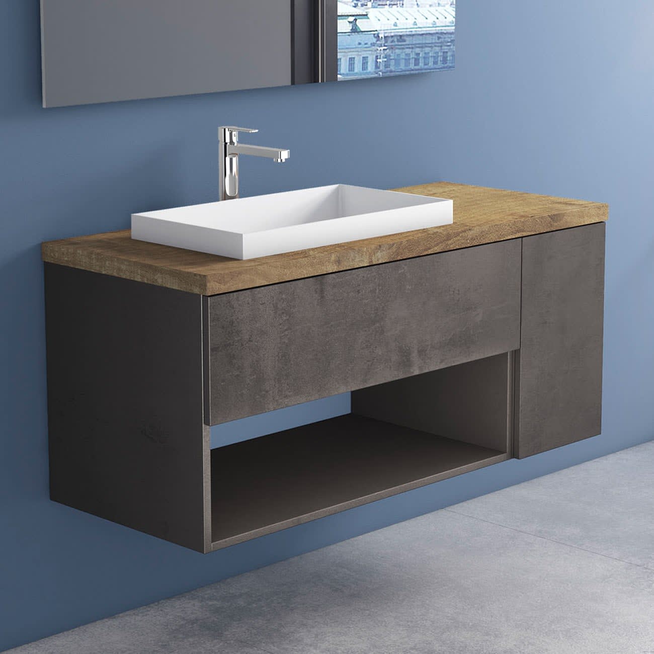 progettobagno Evo Terra Unterschrank 120 cm mit Platte in Holzdekor, Hahnlochbohrung und ELY 60 Einbauwaschtisch , Ausführung links