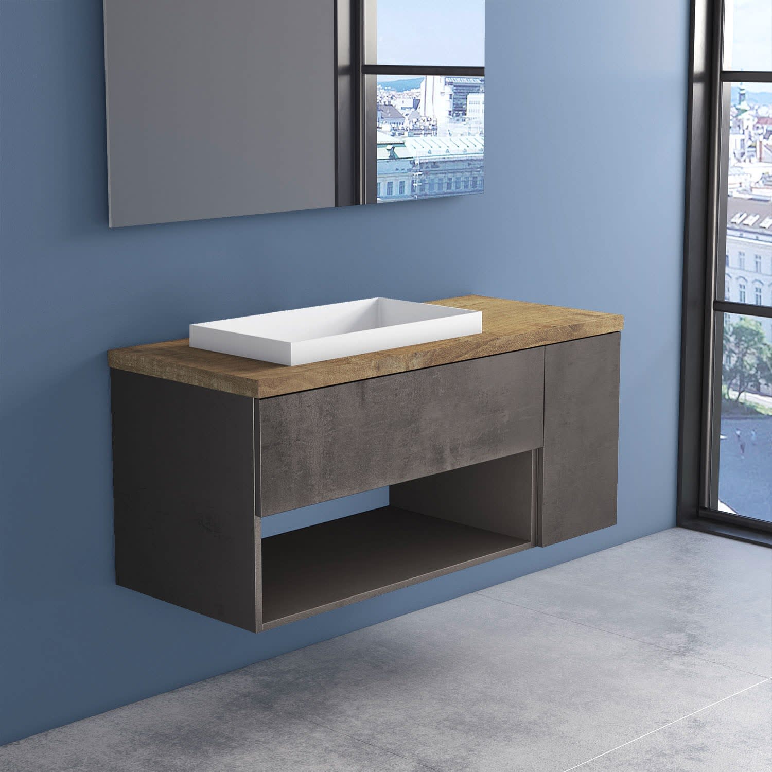 progettobagno Evo Terra Unterschrank 120 cm mit Platte in Holzdekor,ohne Hahnloch und ELY 60 Einbauwaschtisch , Ausführung links
