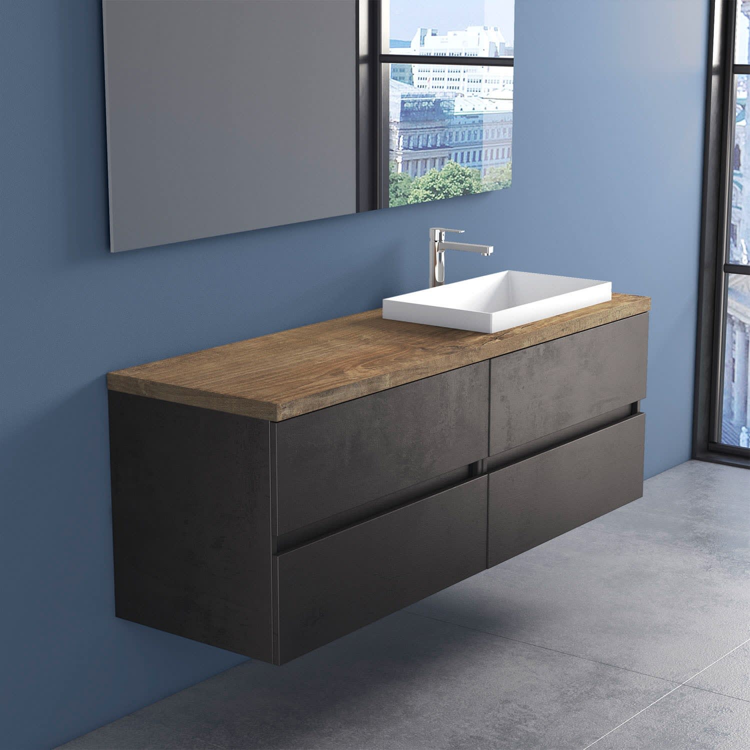 progettobagno Evo Terra Unterschrank 160 cm mit Platte in Holzdekor, Hahnlochbohrung und ELY 60 Einbauwaschtisch , Ausführung rechts