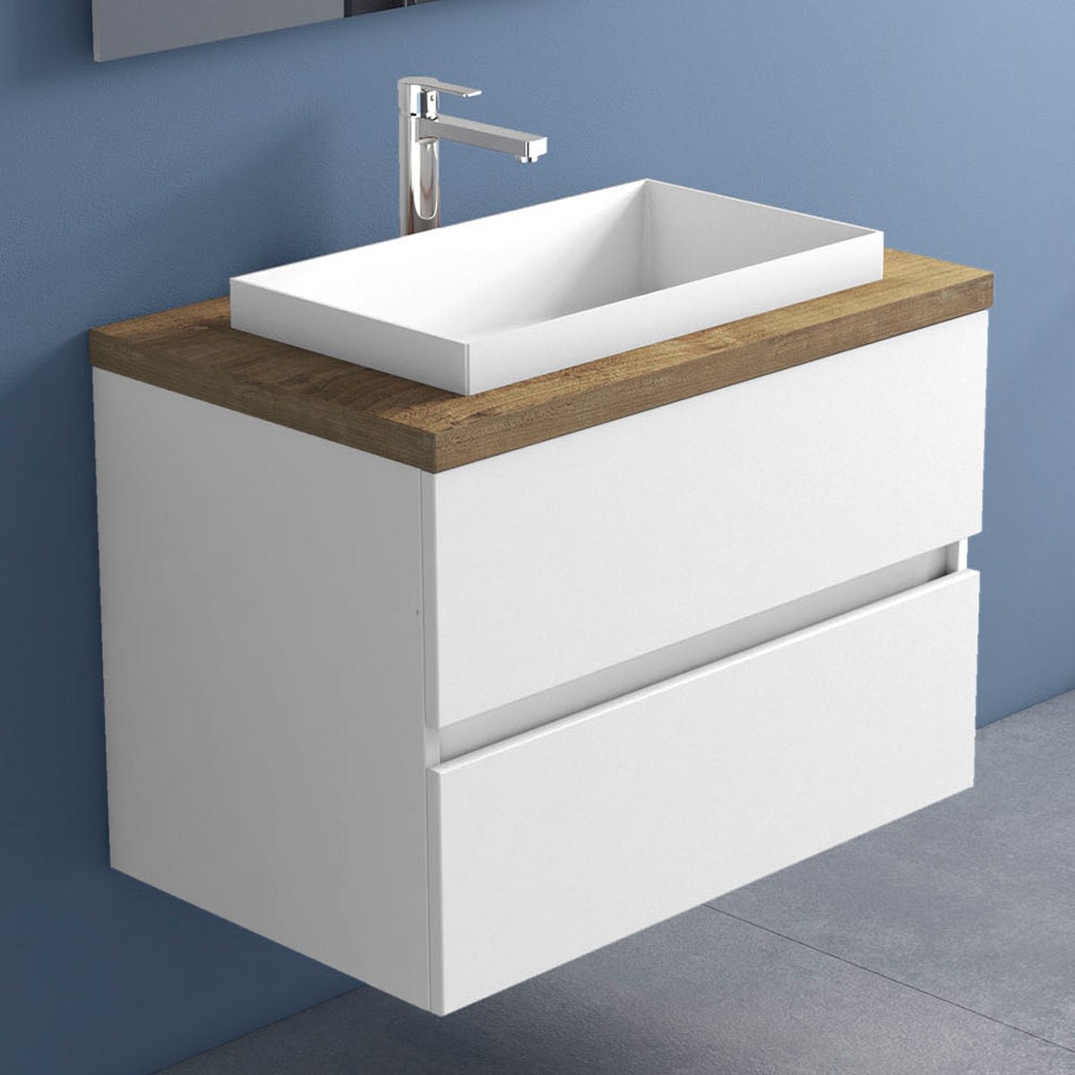 progettobagno Evo Terra Unterschrank 80 cm mit Platte in Holzdekor, Hahnlochbohrung und ELY 60 Einbauwaschtisch