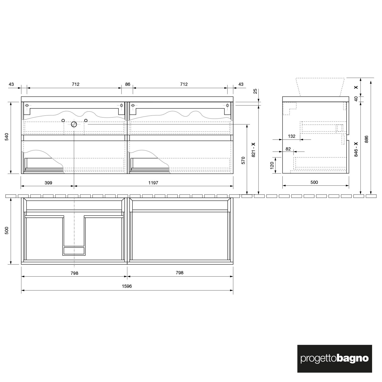 progettobagno Evo Terra Waschtischkonsole 160 cm , Ausführung links