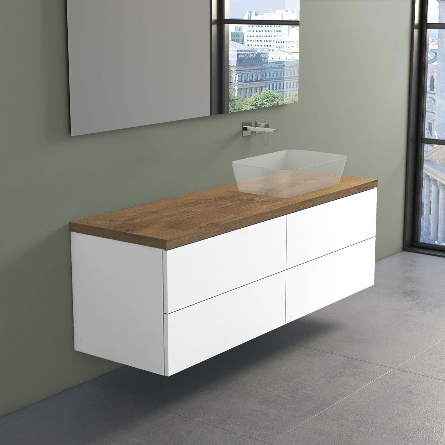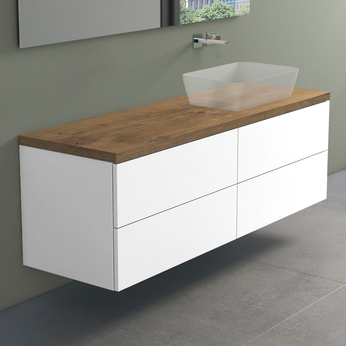 progettobagno Elba Terra Waschtischkonsole 160 cm , Ausführung rechts mit Platte in Holzdekor
