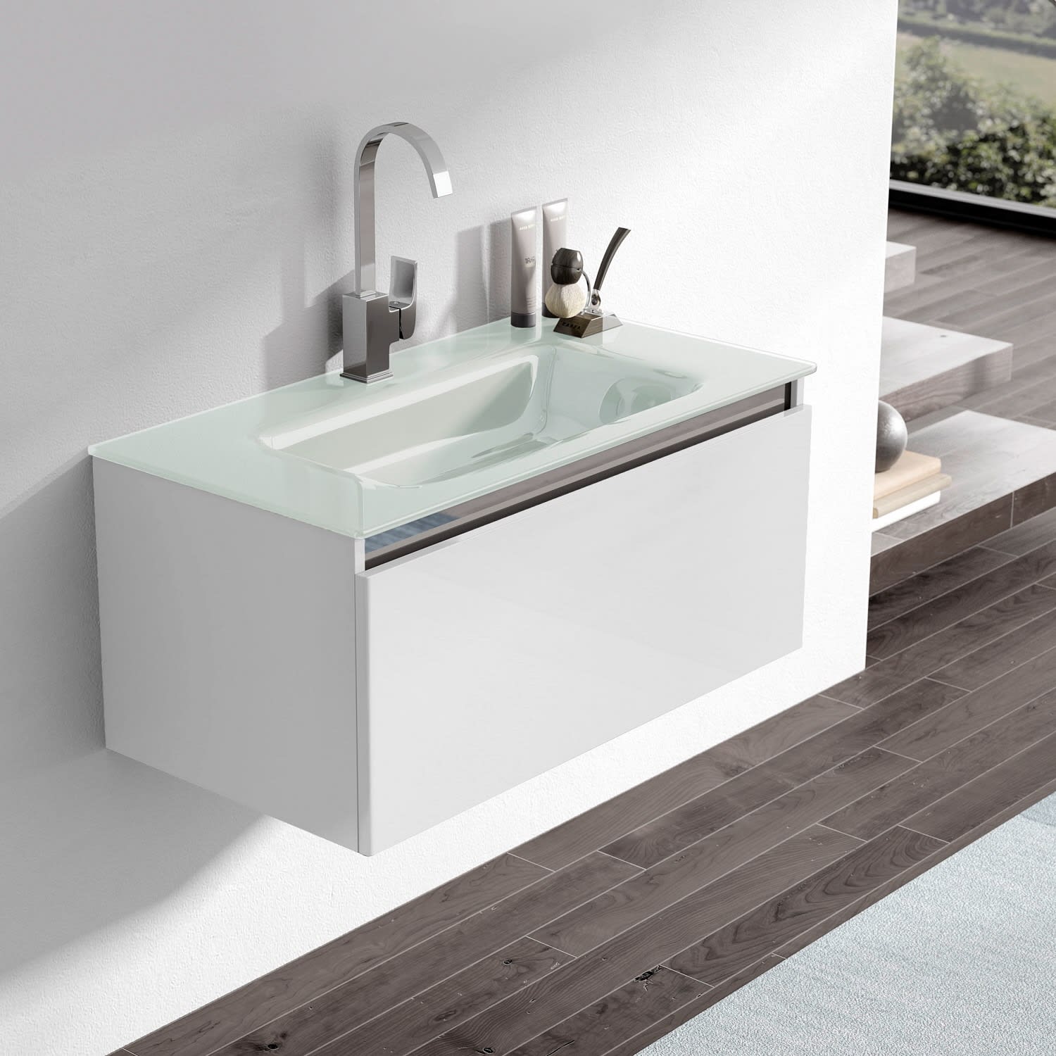 progettobagno Helen Waschtischkombination mit Glaswaschtisch 90 cm weiß