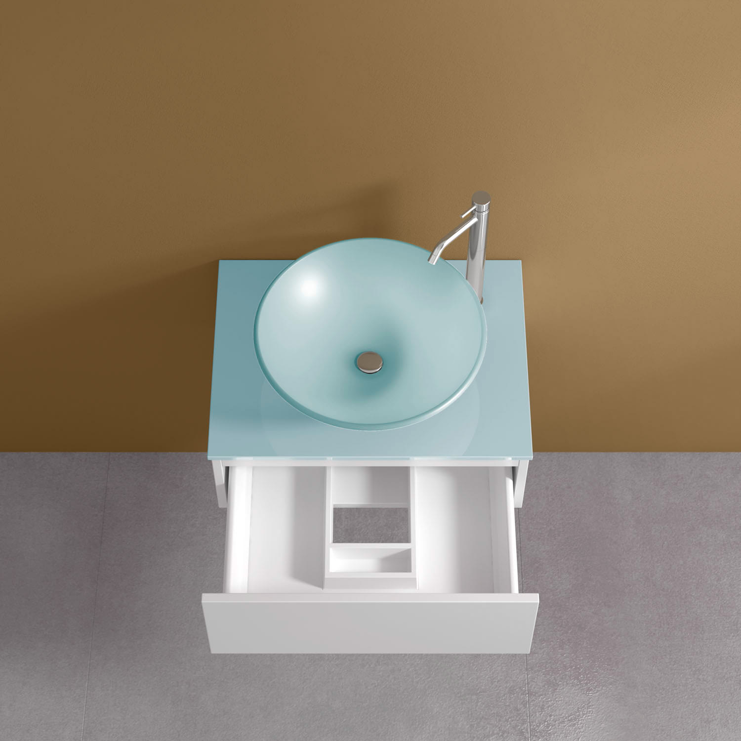 - mit Glasplatte aqua marina und Auszug
