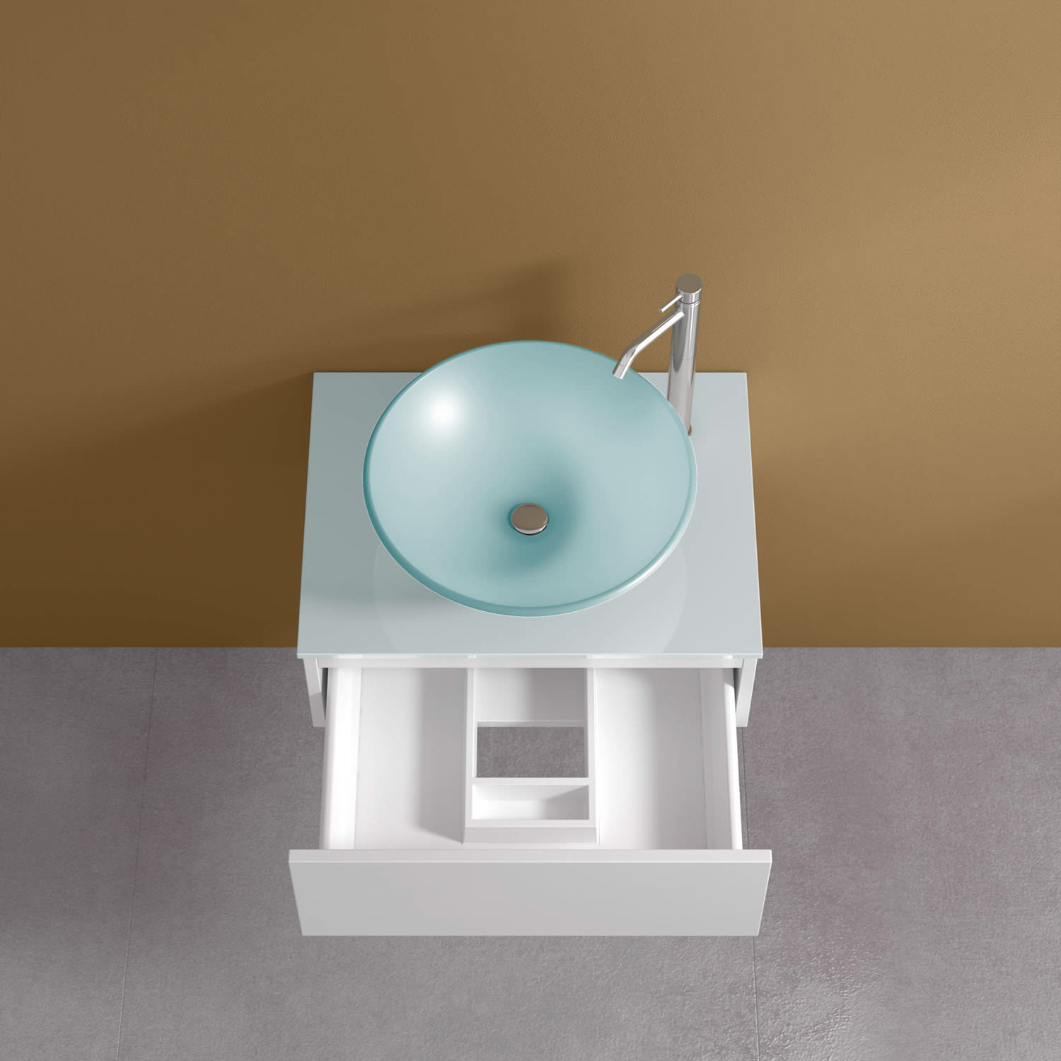 progettobagno Luna Waschtischkonsole 60 cm mit Auszug und Glasplatte