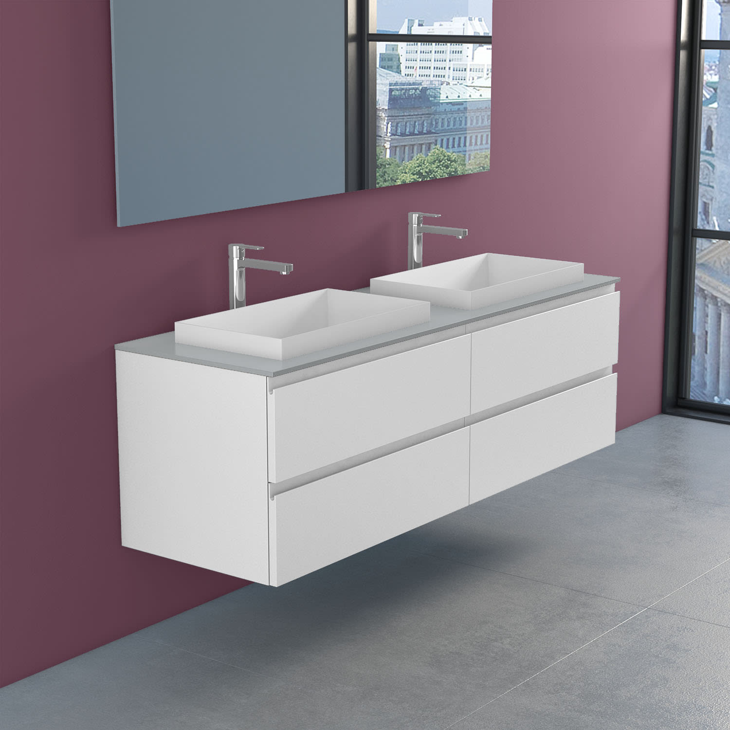 progettobagno Stresa Doppel-Unterschrank 160 cm mit Glasplatte, Hahnlochbohrung und ELY 60 Einbauwaschtischen