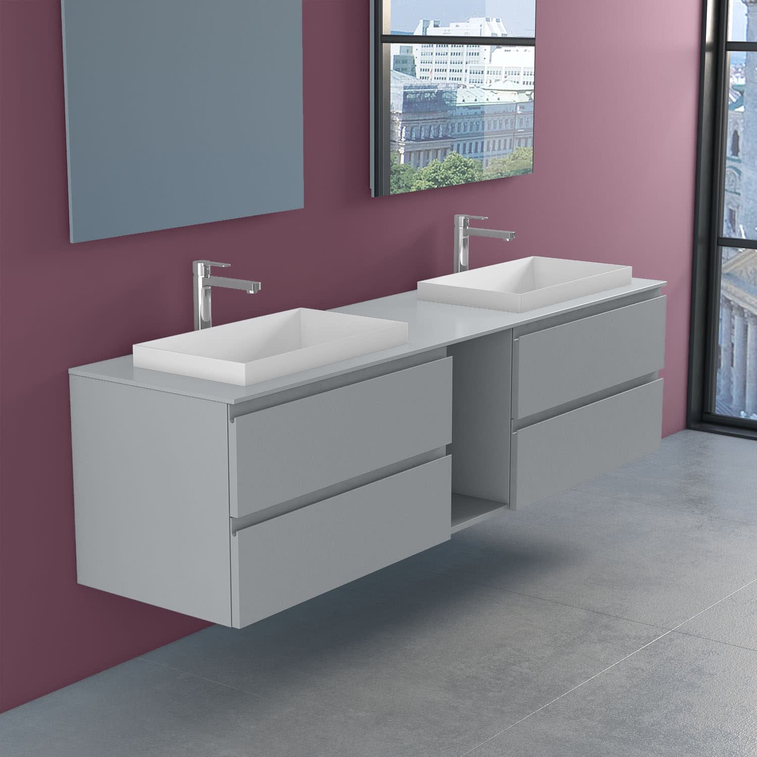 progettobagno Stresa Doppel-Unterschrank 190 cm mit Glasplatte, Hahnlochbohrung und ELY 60 Einbauwaschtischen
