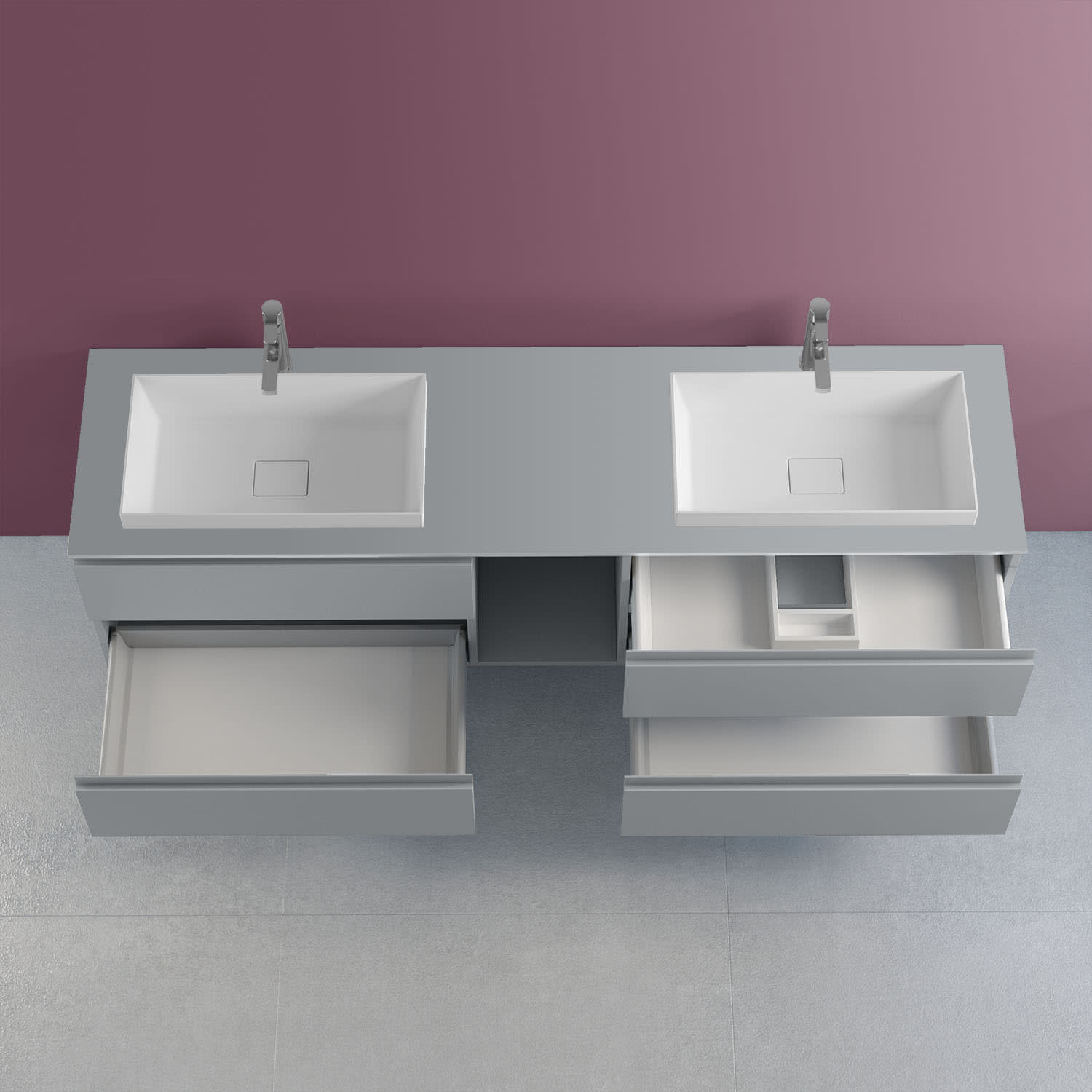 progettobagno Stresa Doppel-Unterschrank 190 cm mit Glasplatte ohne Hahnlochbohrung und ELY 60 Einbauwaschtischen