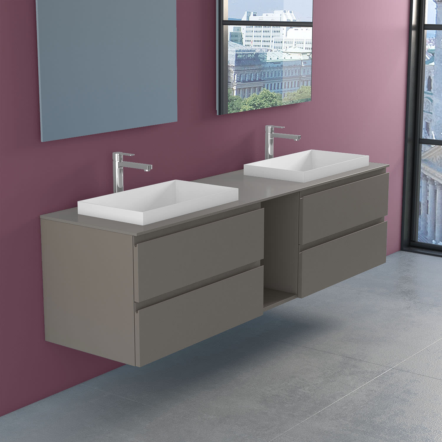 progettobagno Stresa Doppel-Unterschrank 190 cm mit Glasplatte ohne Hahnlochbohrung und ELY 60 Einbauwaschtischen
