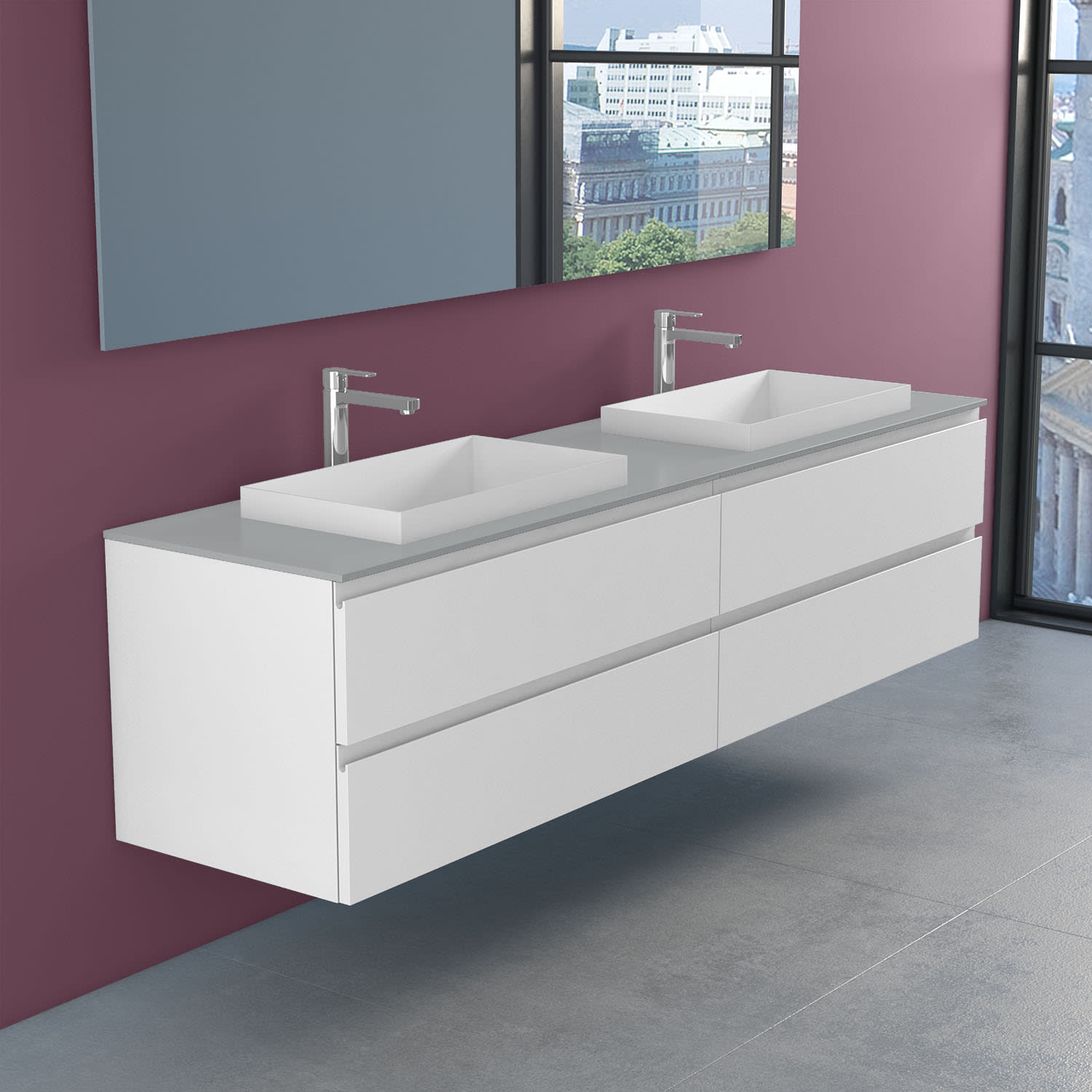 progettobagno Stresa Doppel-Unterschrank 200 cm mit Glasplatte, Hahnlochbohrung und ELY 60 Einbauwaschtischen