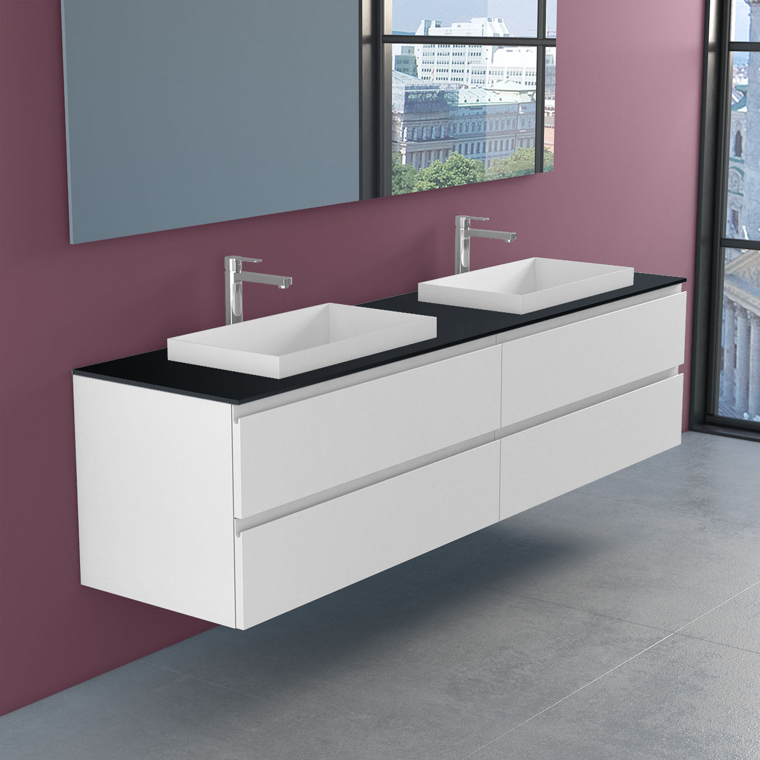 progettobagno Stresa Doppel-Unterschrank 200 cm mit Glasplatte ohne Hahnlochbohrung und ELY 60 Einbauwaschtischen