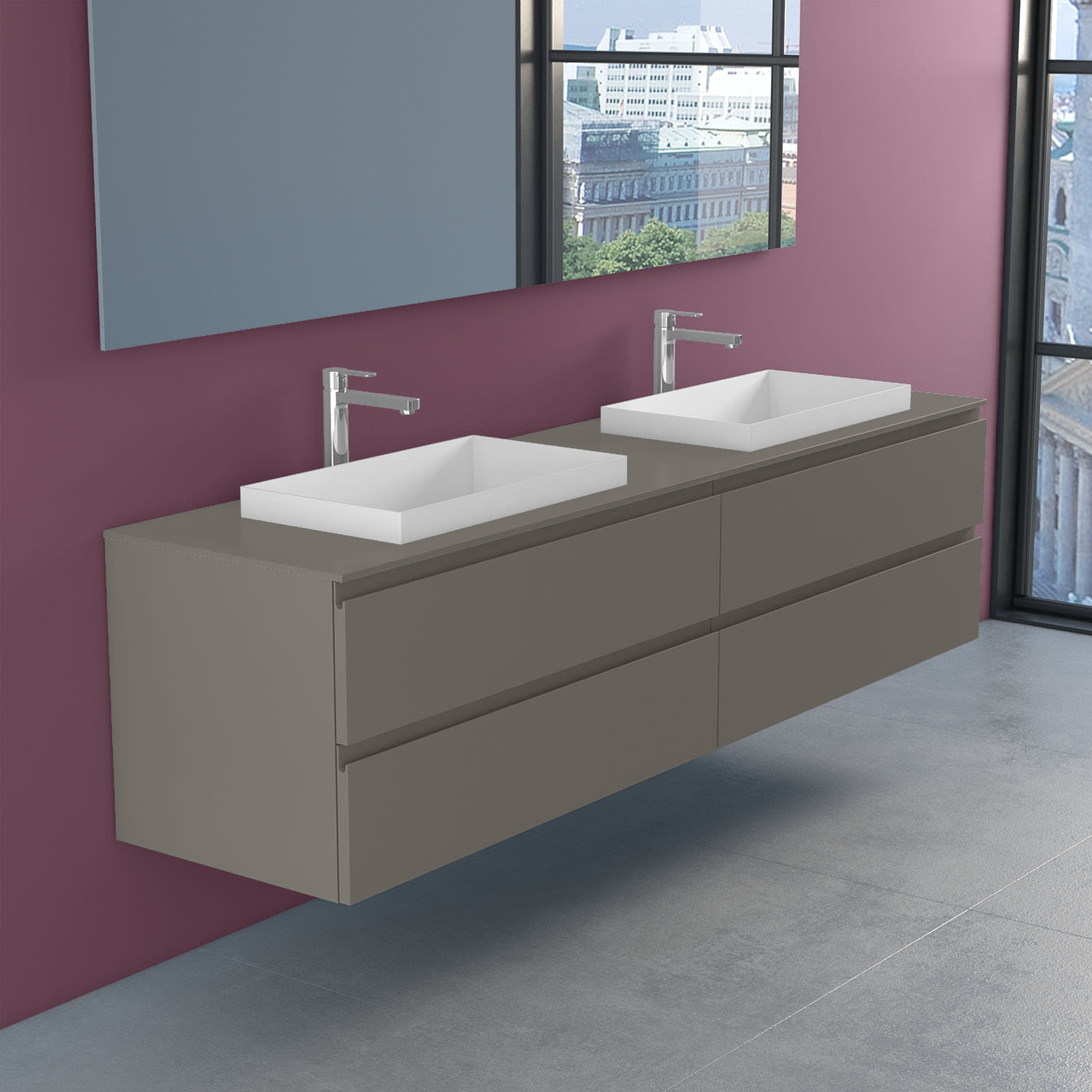 progettobagno Stresa Doppel-Unterschrank 200 cm mit Glasplatte ohne Hahnlochbohrung und ELY 60 Einbauwaschtischen