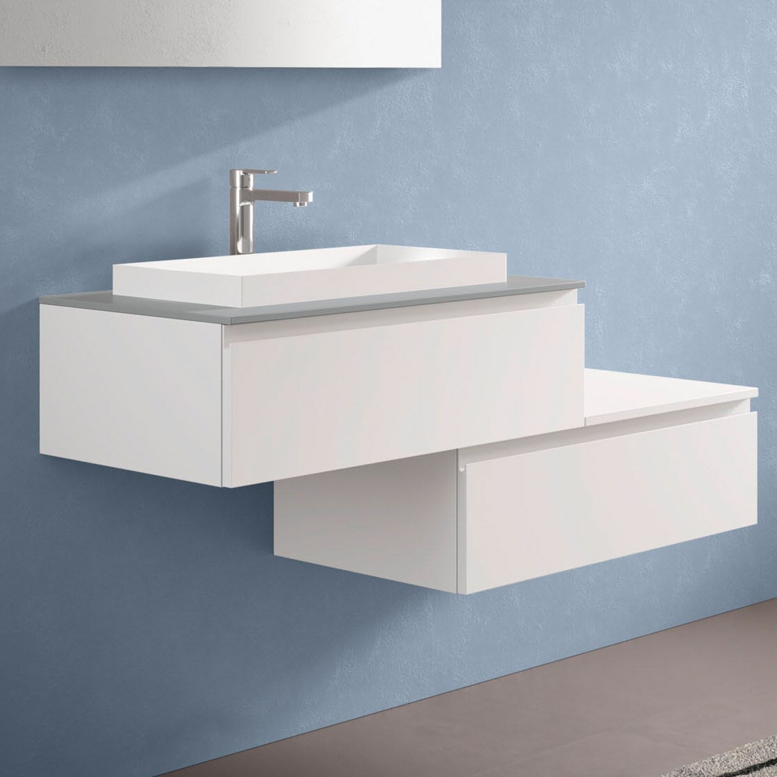 progettobagno Stresa Duo 130 cm mit ELY 60 Einbauwaschtisch links, mit Hahnlochbohrung