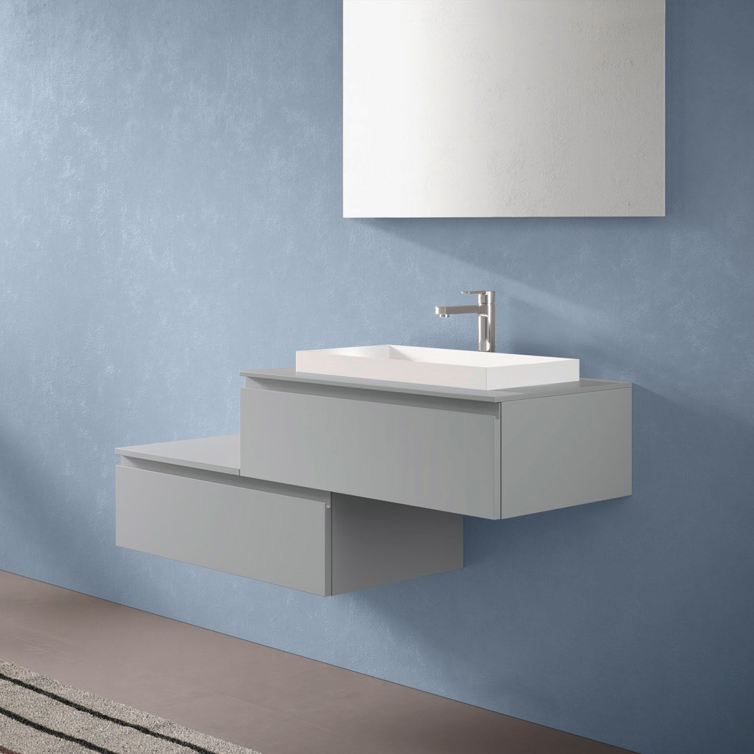 progettobagno Stresa Duo 130 cm mit ELY 60 Einbauwaschtisch rechts, mit Hahnlochbohrung