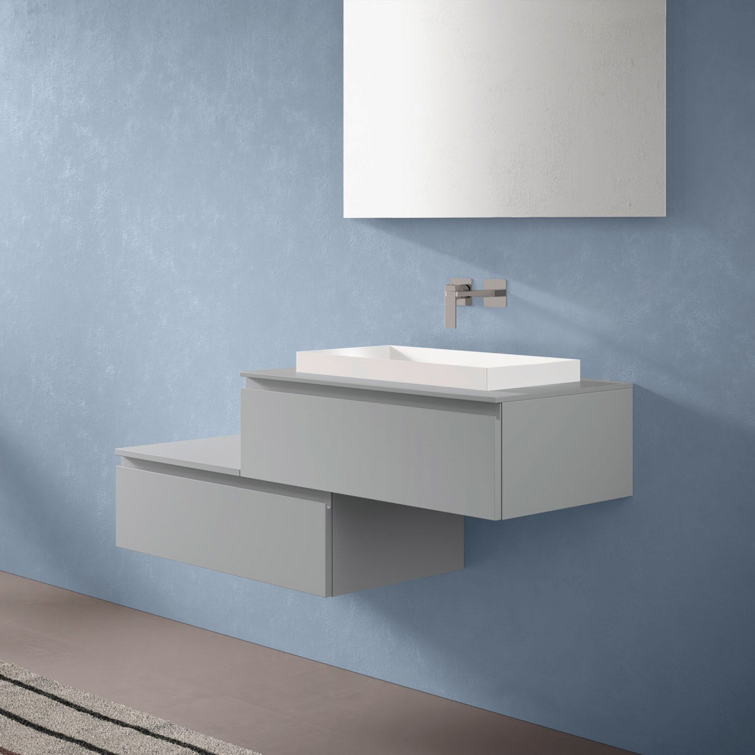 progettobagno Stresa Duo 130 cm mit ELY 60 Einbauwaschtisch rechts, ohne Hahnlochbohrung
