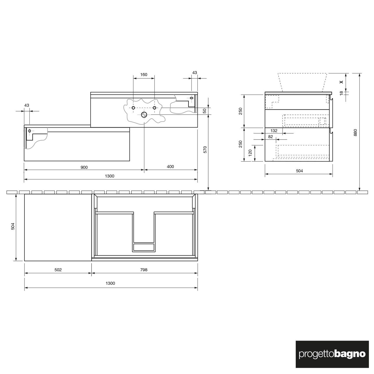 progettobagno Stresa Duo Modular Waschtischkonsole 130 cm rechts