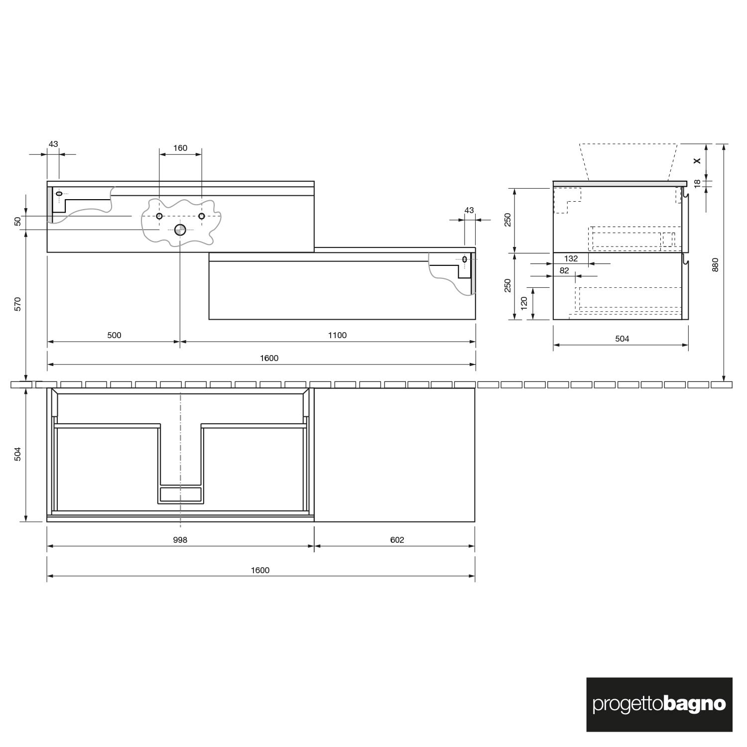 progettobagno Stresa Duo Modular Waschtischkonsole 160 cm links