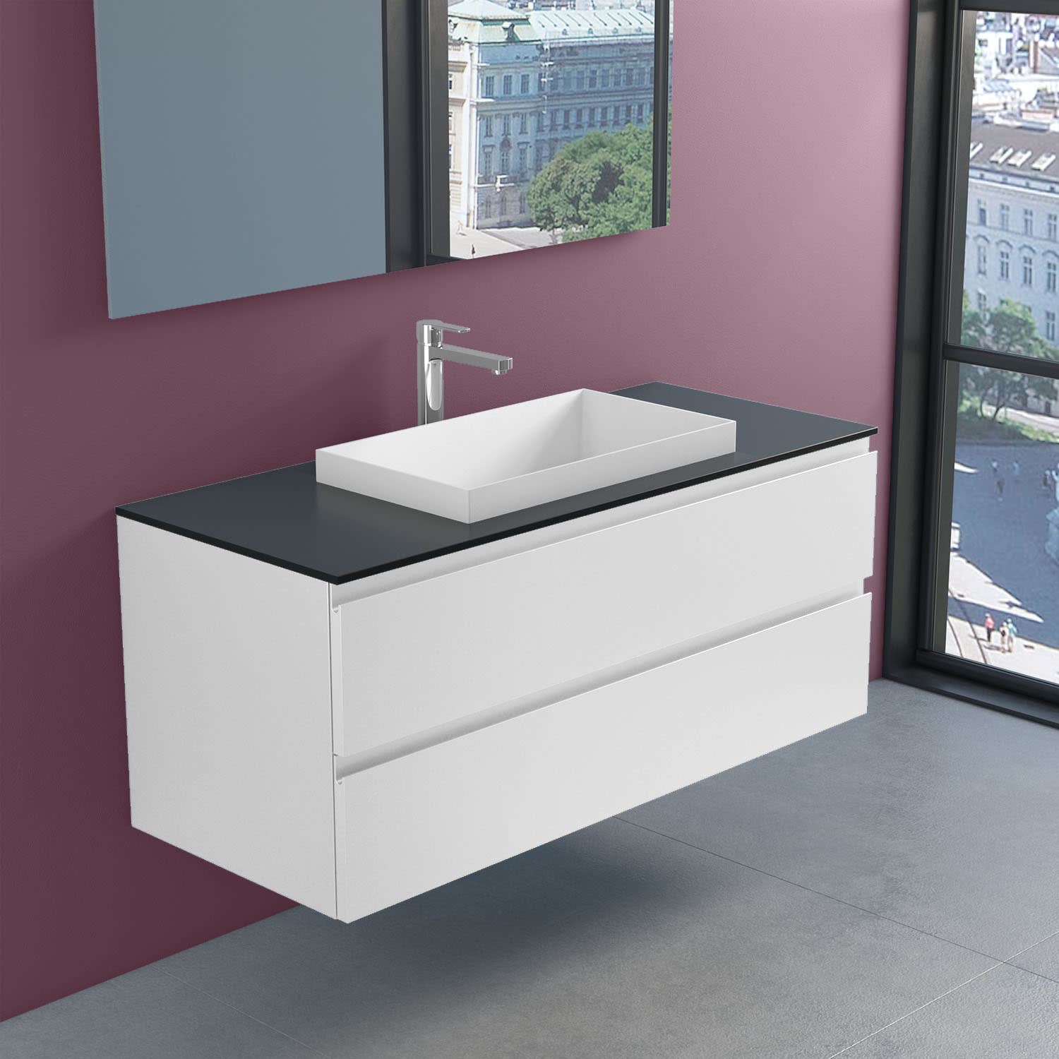 progettobagno Stresa Unterschrank 120 cm mit Glasplatte, Hahnlochbohrung und ELY 60 Einbauwaschtisch