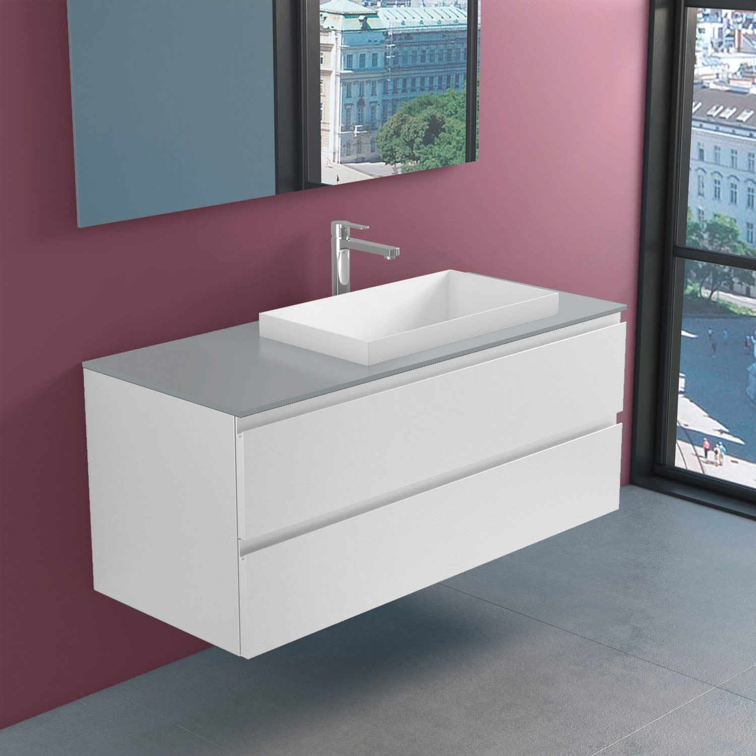progettobagno Stresa Unterschrank 120 cm, Ausführung rechts mit Glasplatte ohne Hahnlochbohrung und ELY 60 Einbauwaschtisch