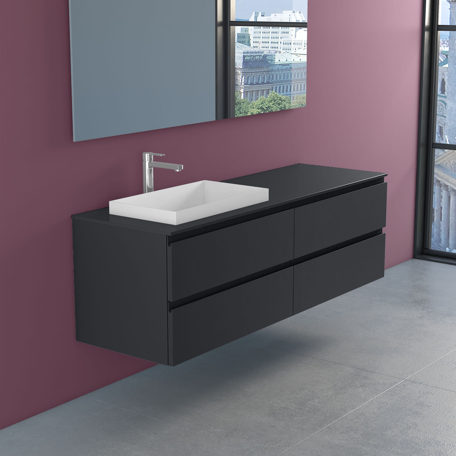 progettobagno Stresa Unterschrank 160 cm, Ausführung links mit Glasplatte ohne Hahnlochbohrung und ELY 60 Einbauwaschtisch