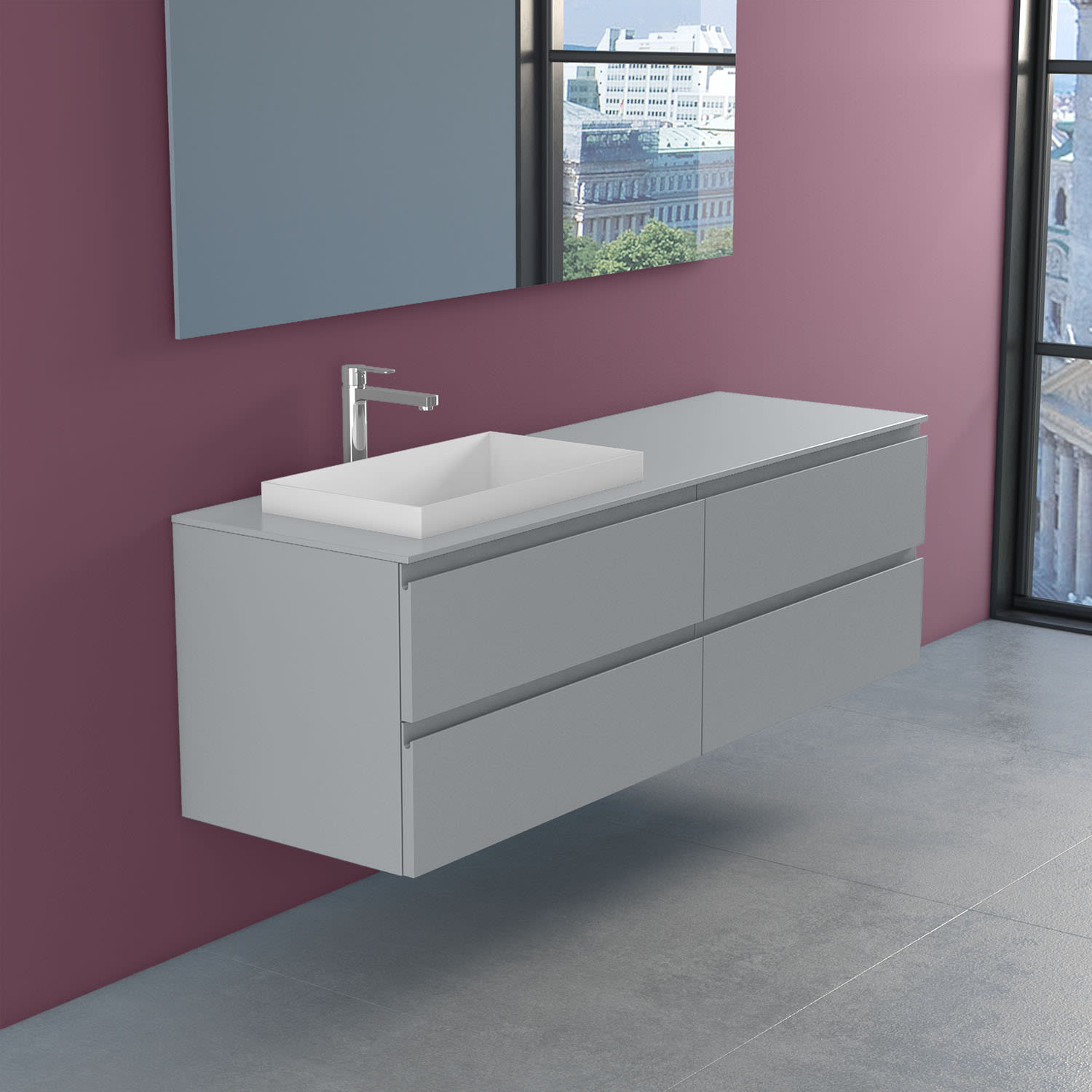 progettobagno Stresa Unterschrank 160 cm, Ausführung links mit Glasplatte ohne Hahnlochbohrung und ELY 60 Einbauwaschtisch