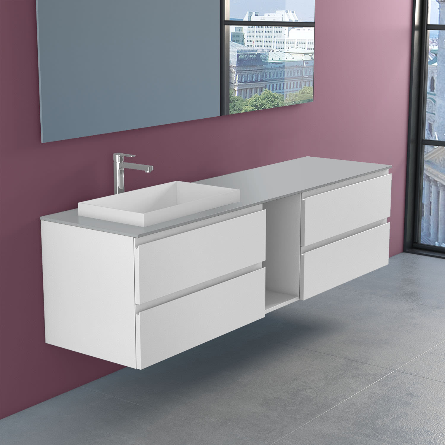 progettobagno Stresa Unterschrank 190 cm, Ausführung links mit Glasplatte, Hahnlochbohrung und ELY 60 Einbauwaschtisch