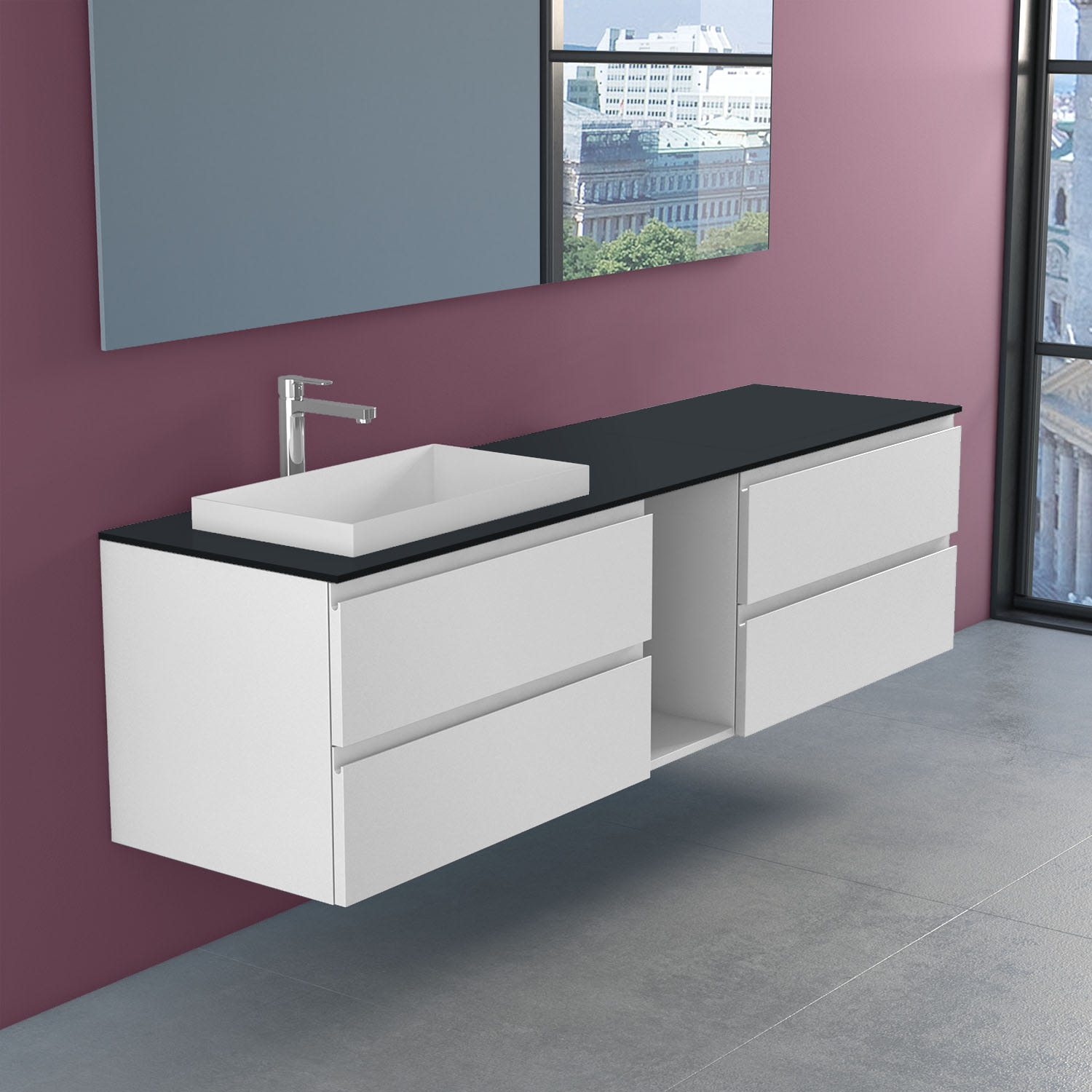 progettobagno Stresa Unterschrank 190 cm, Ausführung links mit Glasplatte ohne Hahnlochbohrung und ELY 60 Einbauwaschtisch