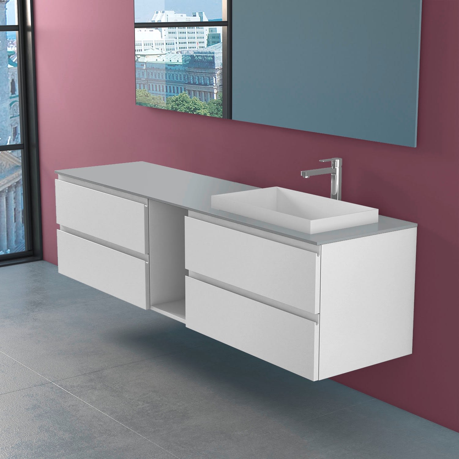 progettobagno Stresa Unterschrank 190 cm, Ausführung rechts mit Glasplatte, Hahnlochbohrung und ELY 60 Einbauwaschtisch