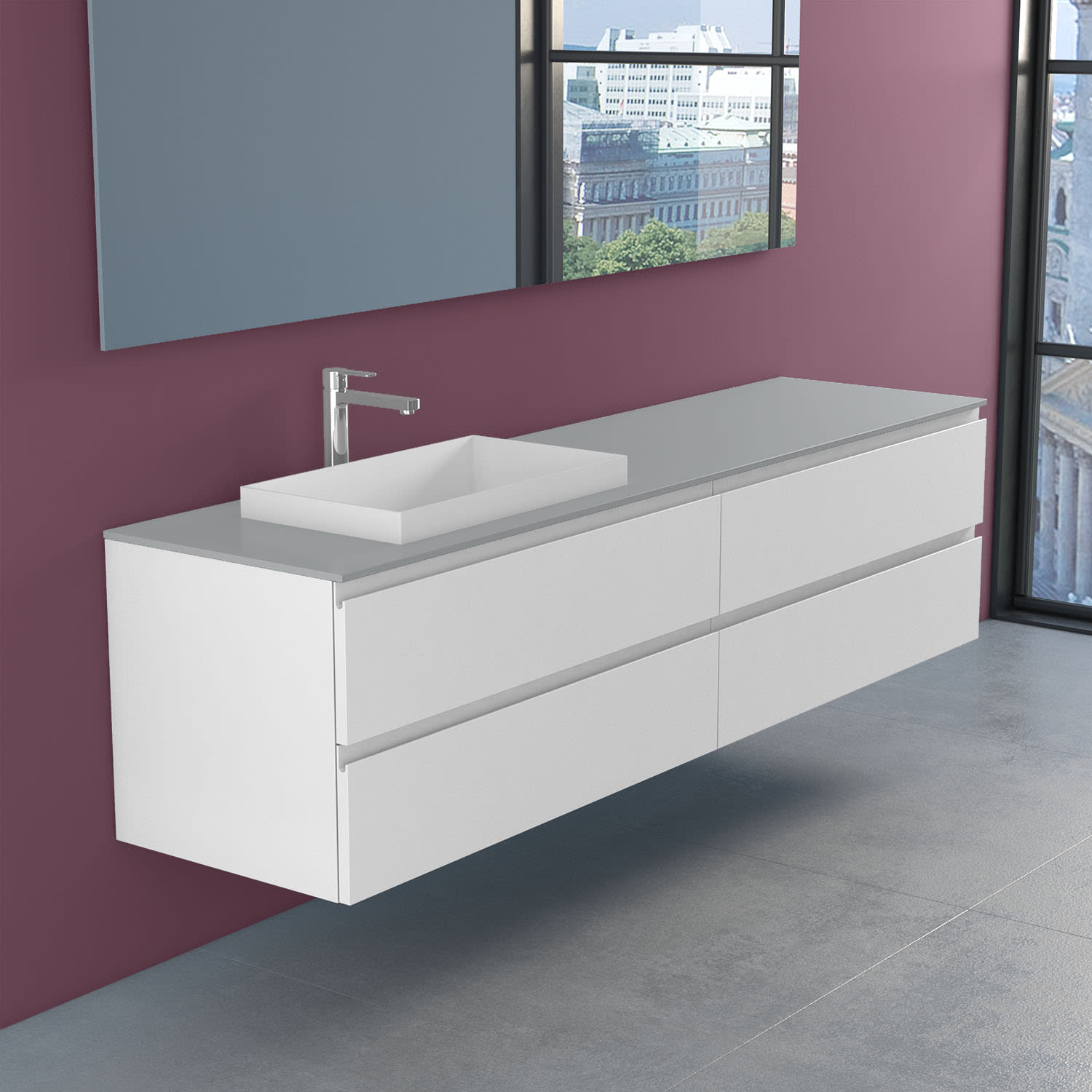 progettobagno Stresa Unterschrank 200 cm, Ausführung links mit Glasplatte ohne Hahnlochbohrung und ELY 60 Einbauwaschtisch