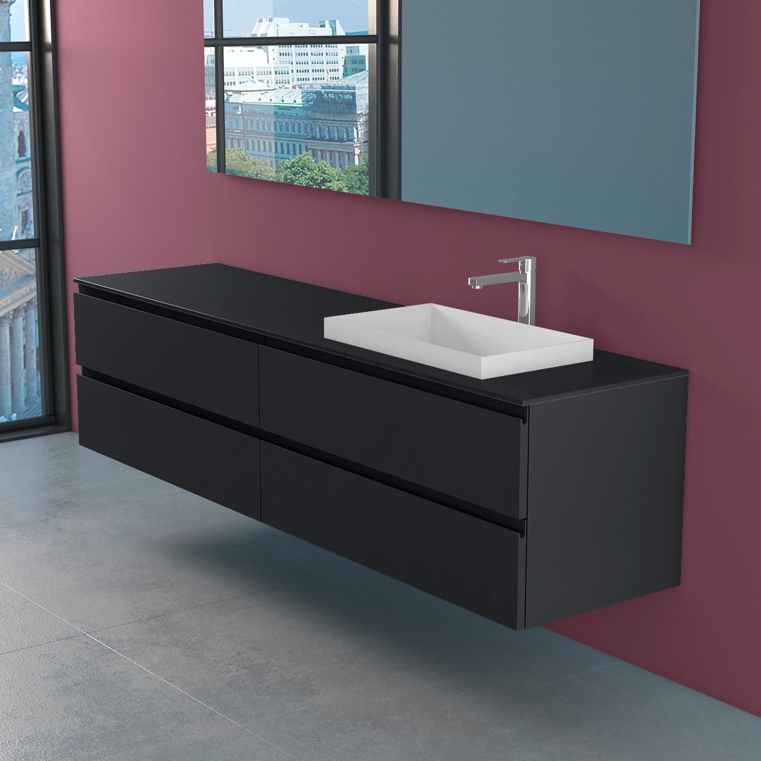 progettobagno Stresa Unterschrank 200 cm, Ausführung rechts und Glasplatte, Hahnlochbohrung und ELY 60 Einbauwaschtisch