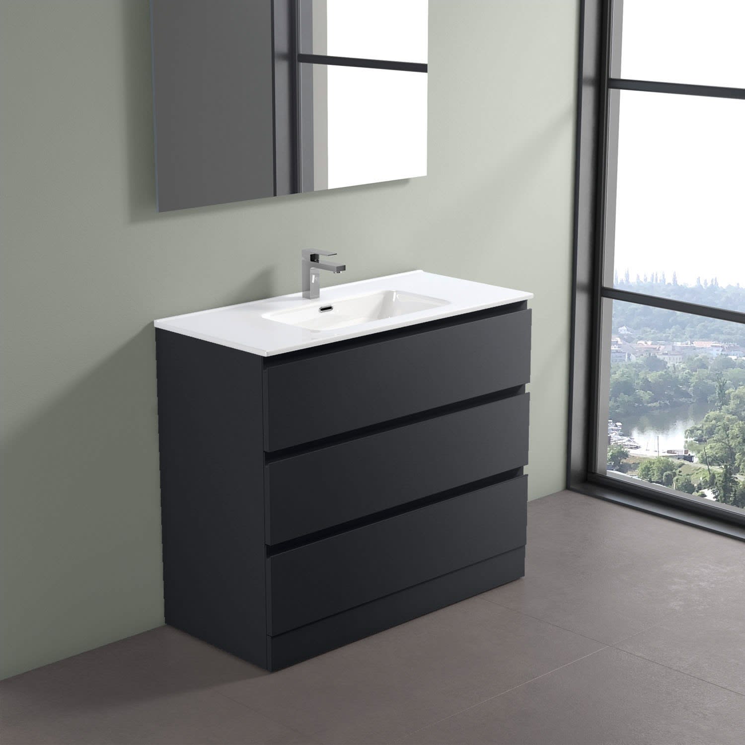progettobagno Stresa Tre Waschtisch mit Unterschrank 100 cm bodenstehend