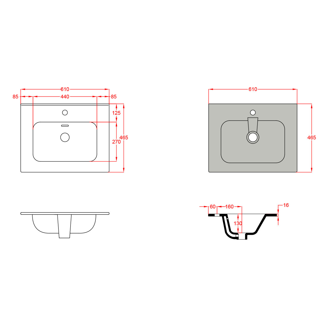 - Abmessungen: B: 61 T: 46,5 H: 1,6 cm